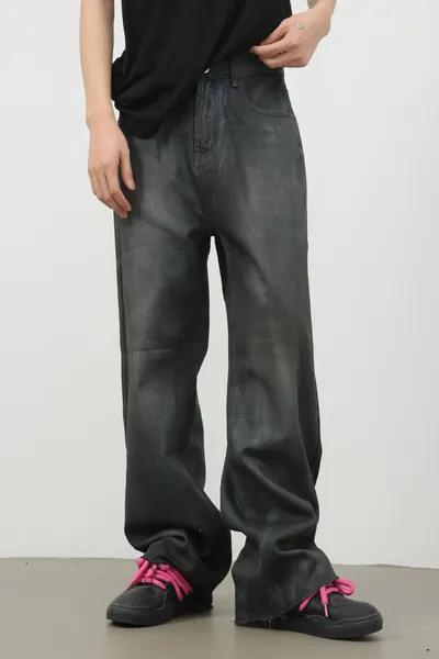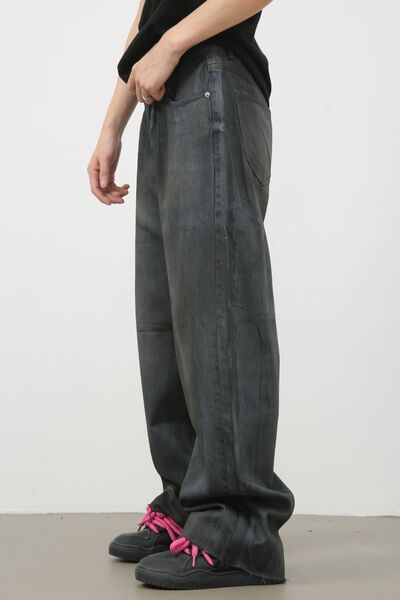 Men's Frayed Hem Jeans with Pockets