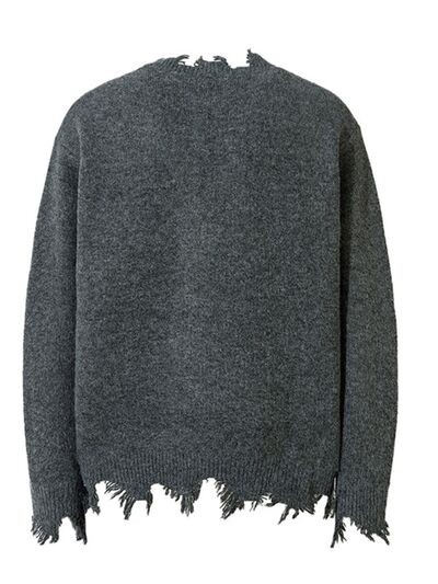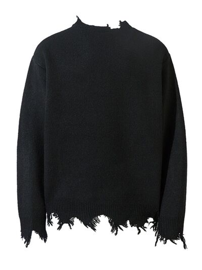 Men's Frayed Hem Quarter Zip Sweater