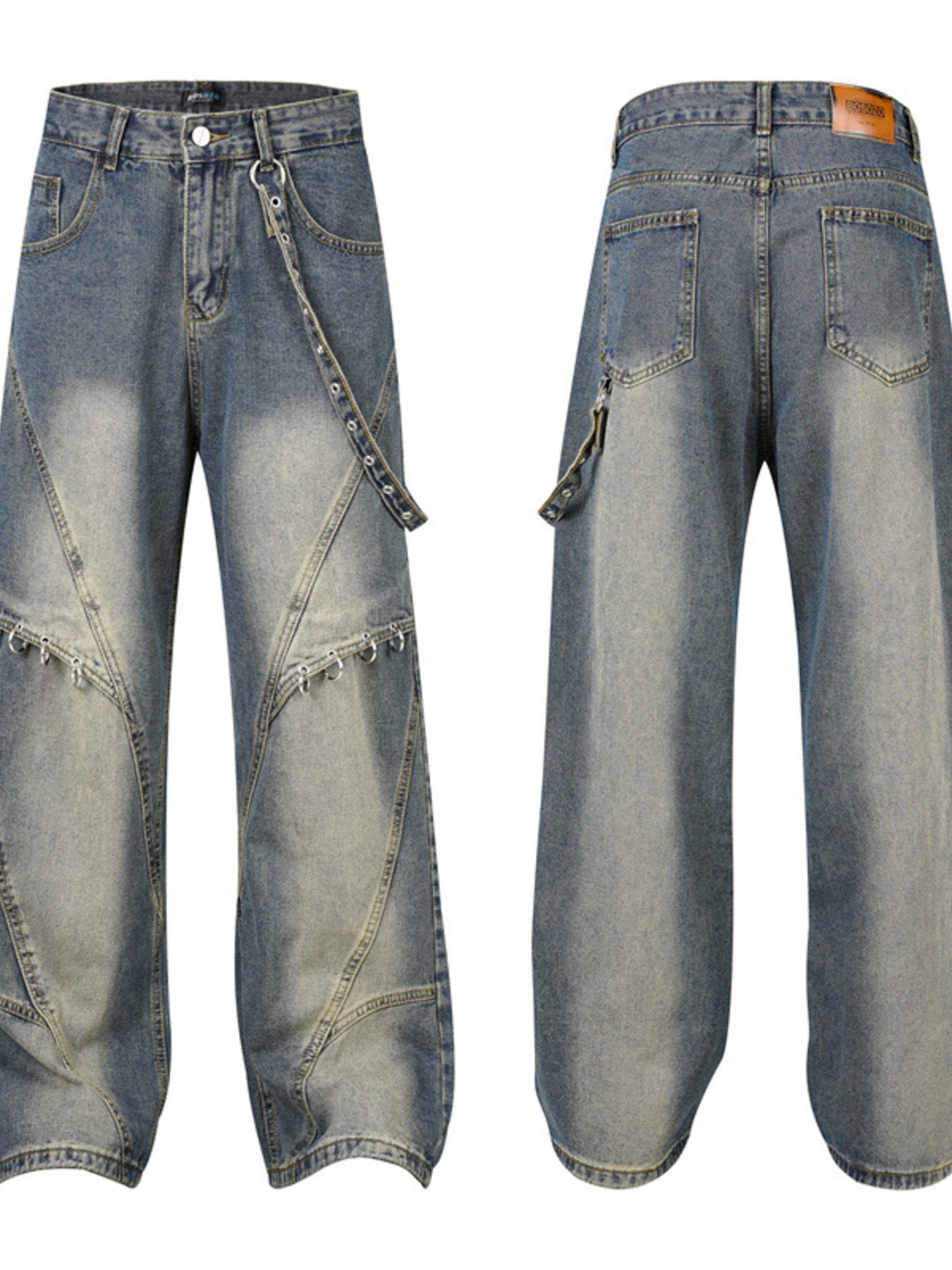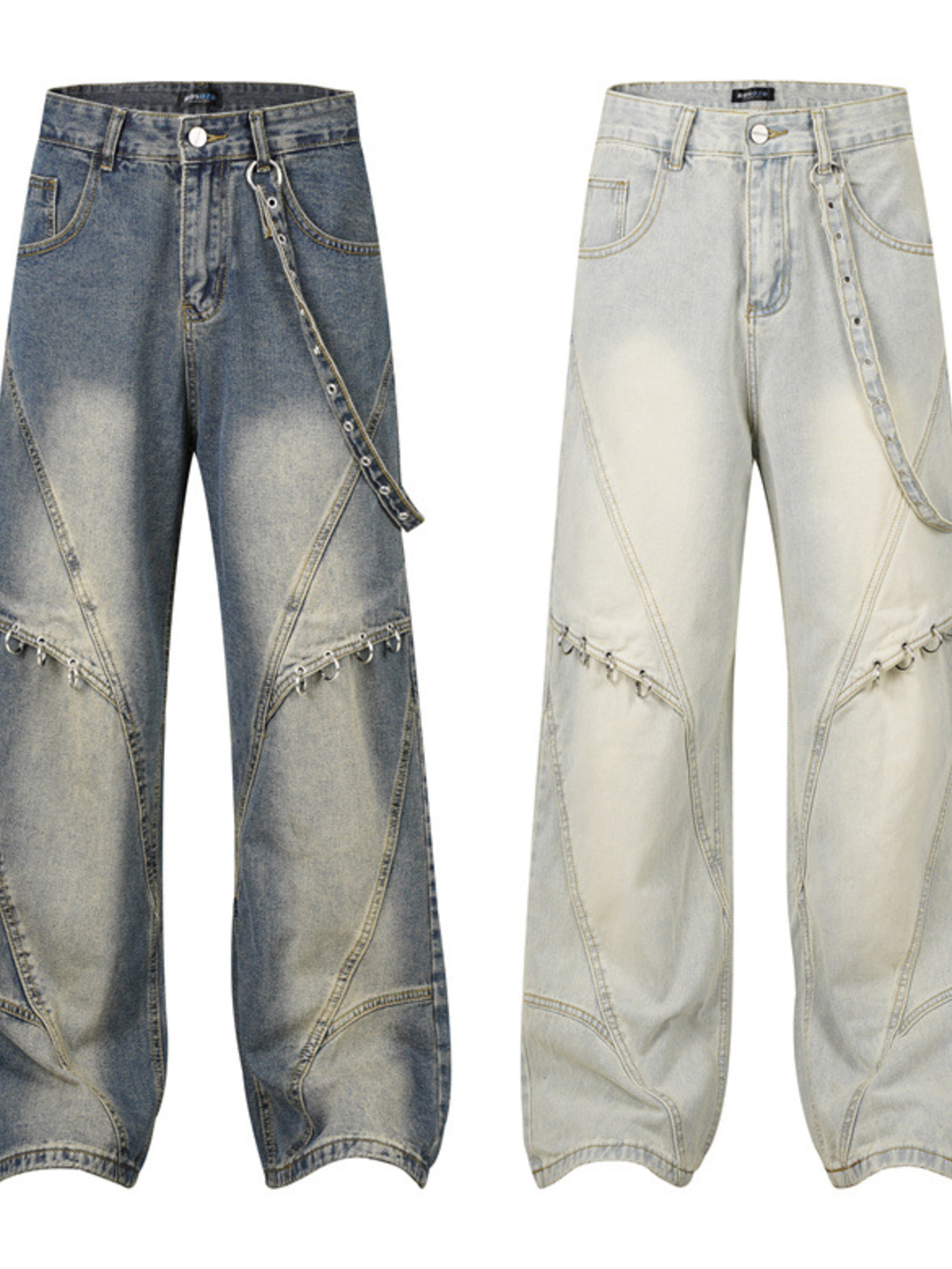 Men's Frayed Hem Wide Leg Jeans