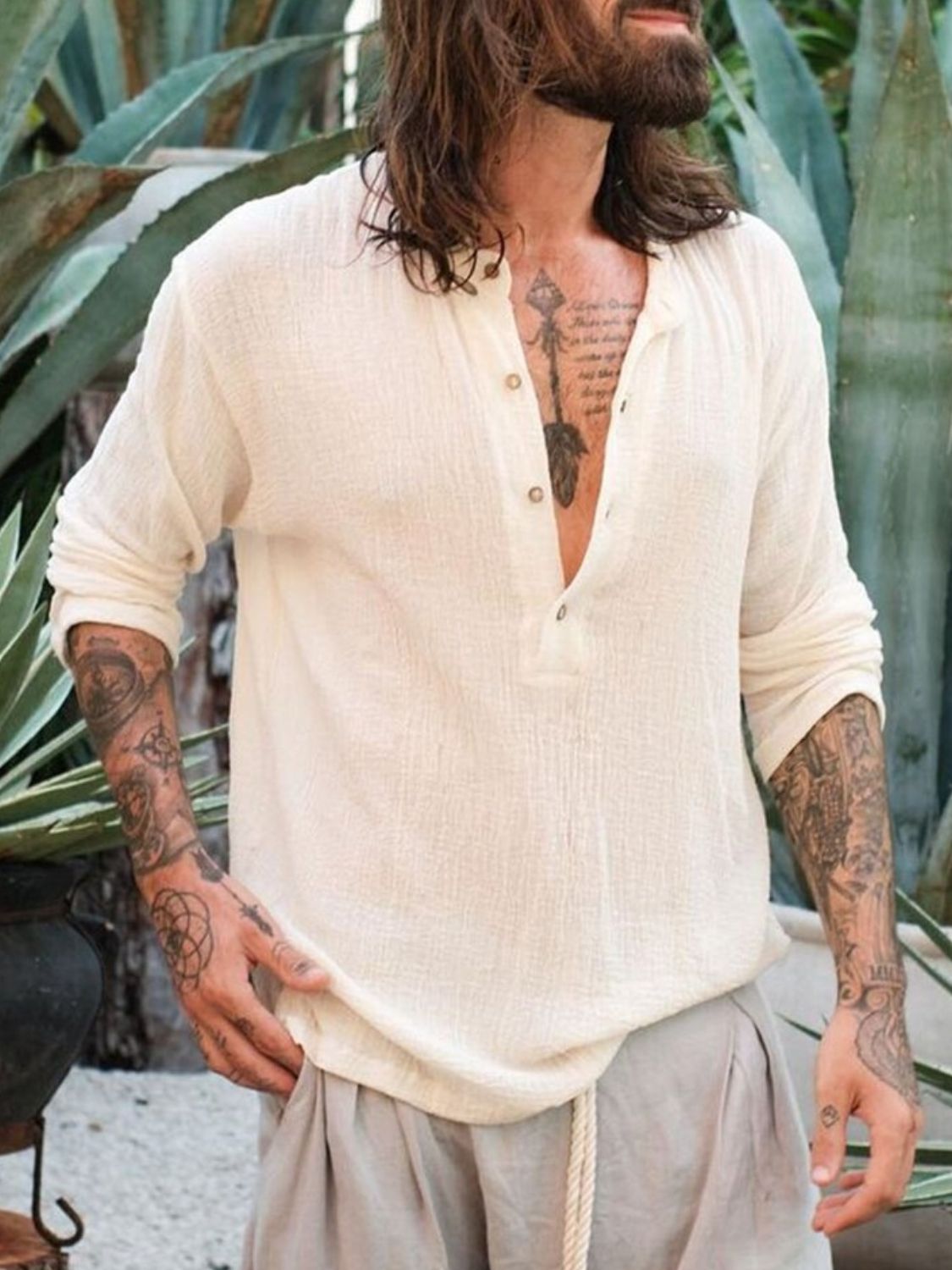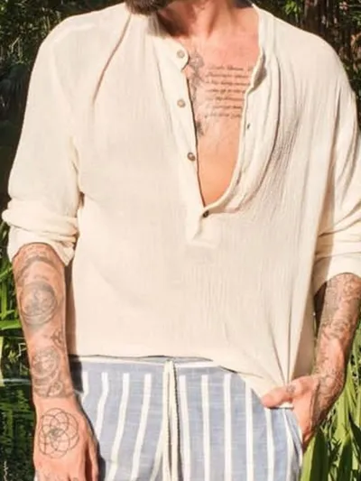 Men's Full Size Button Detail Long Sleeve Blouse Plus Size