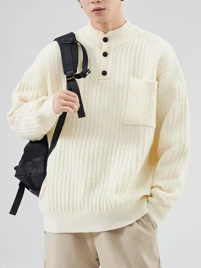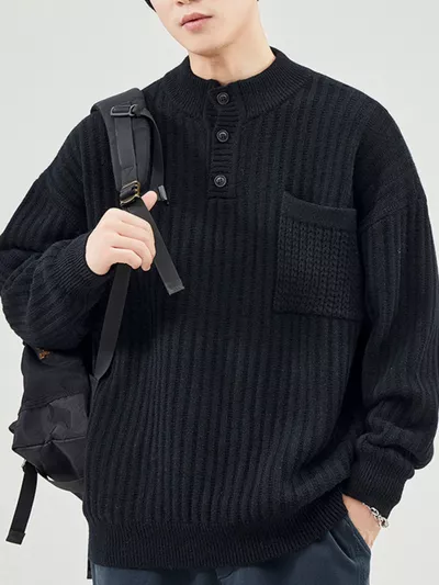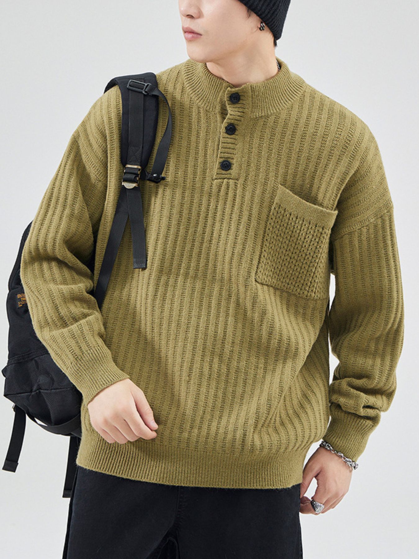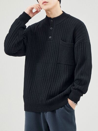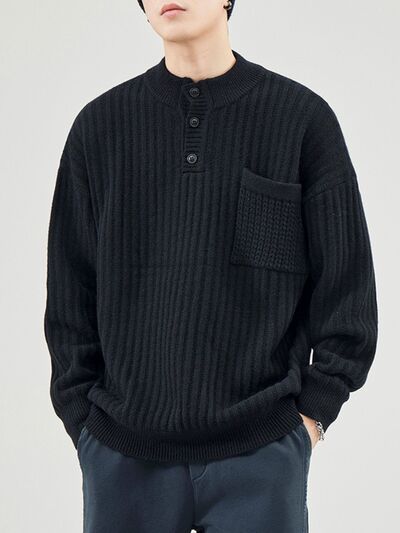 Men's Full Size Button Detail Long Sleeve Sweater Plus Size
