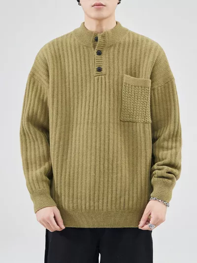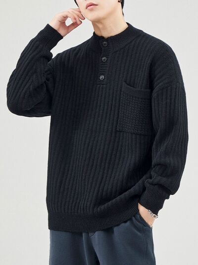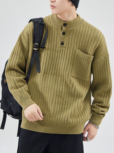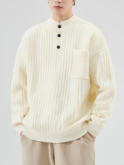 Men's Full Size Button Detail Long Sleeve Sweater Plus Size