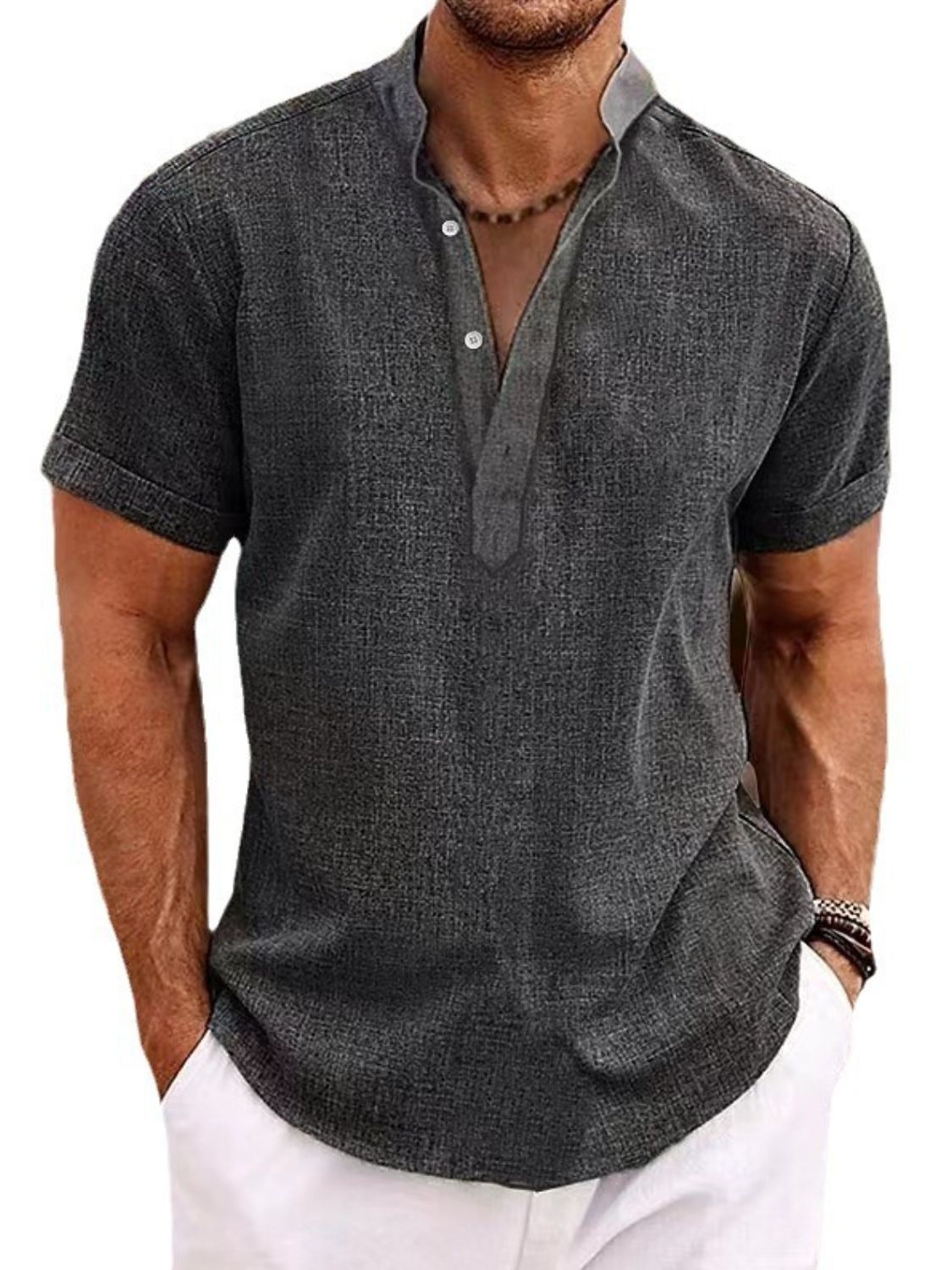 Men's Full Size Button Detail Short Sleeve Polo Plus Size