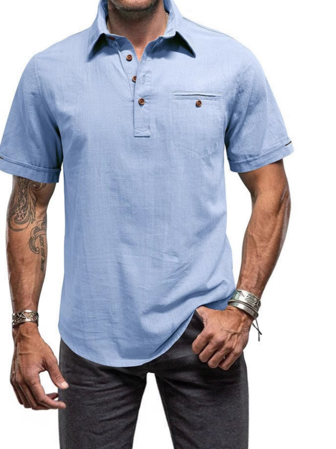 Men's Full Size Button Detail Short Sleeve Polo Plus Size