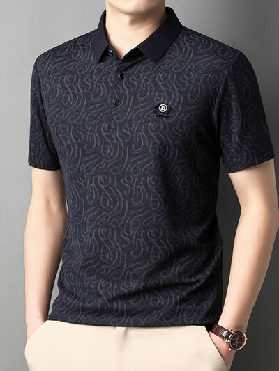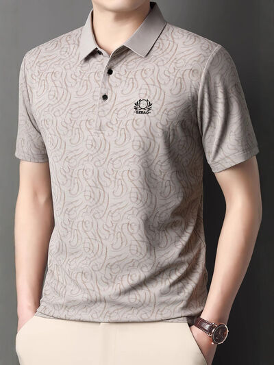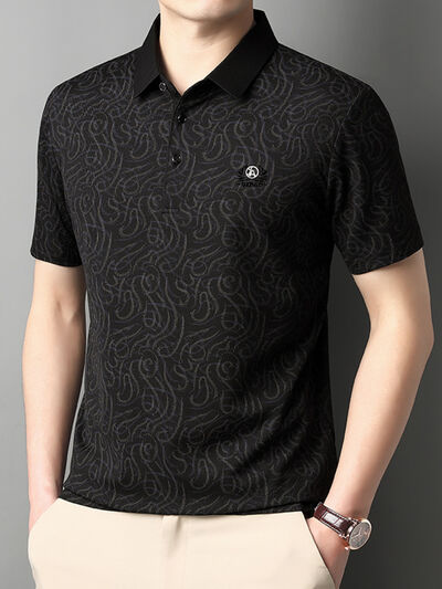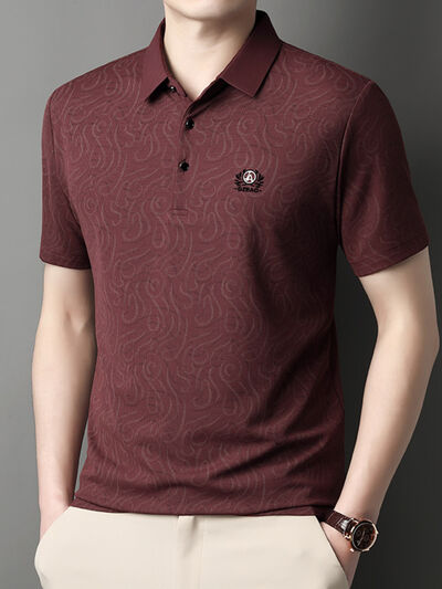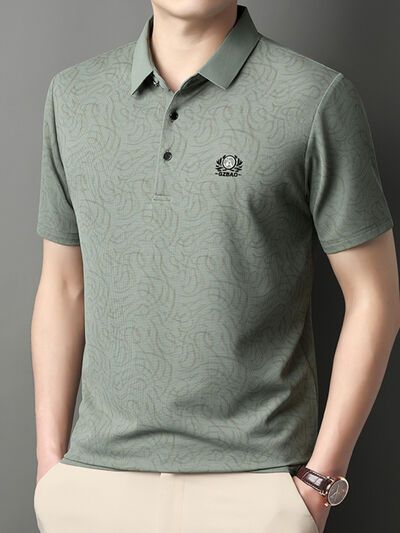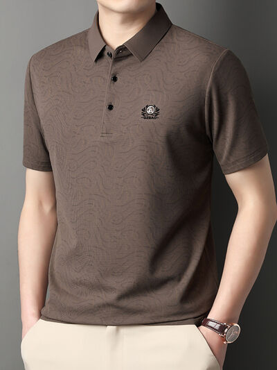 Men's Full Size Button Detail Short Sleeve Polo Plus Size