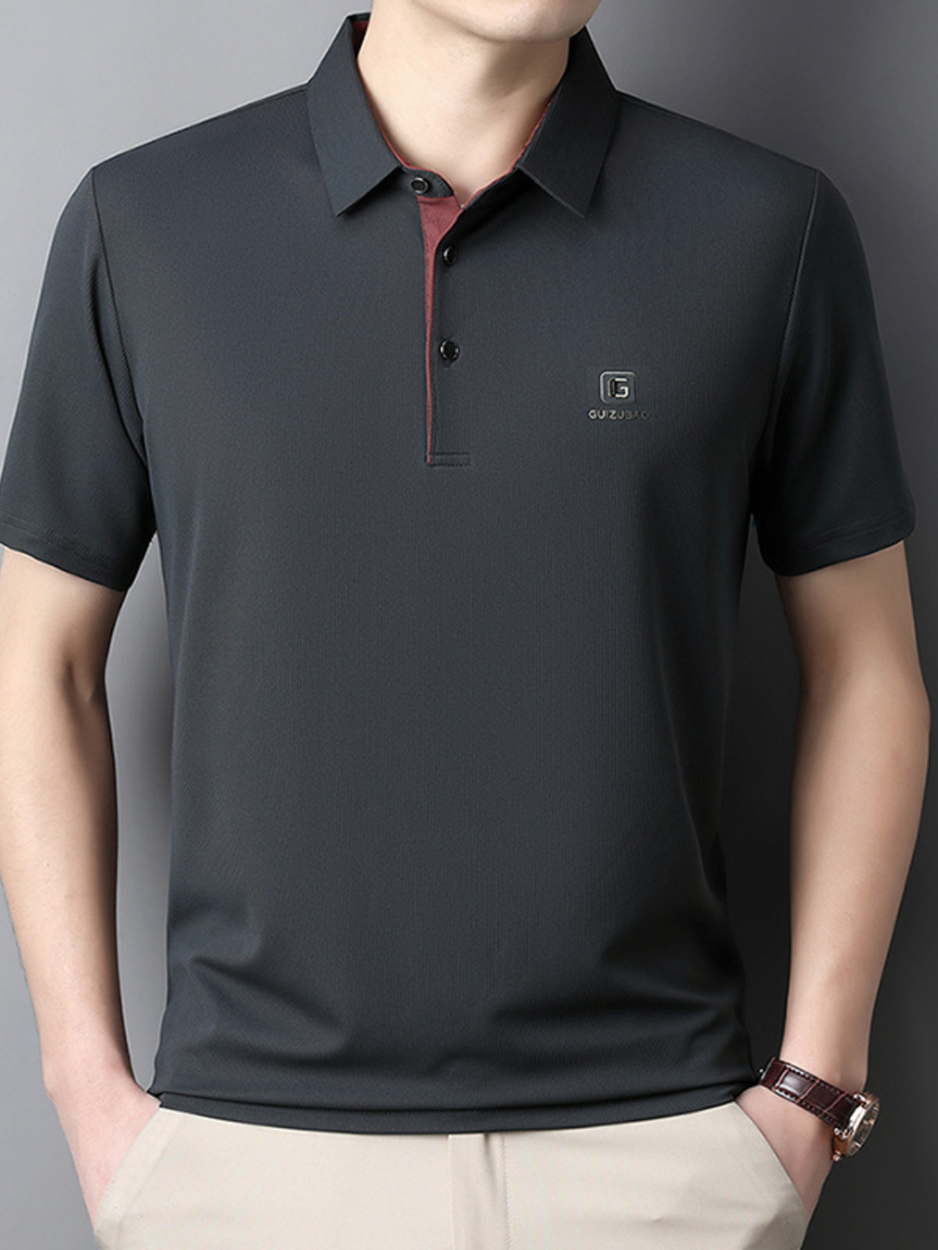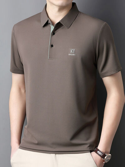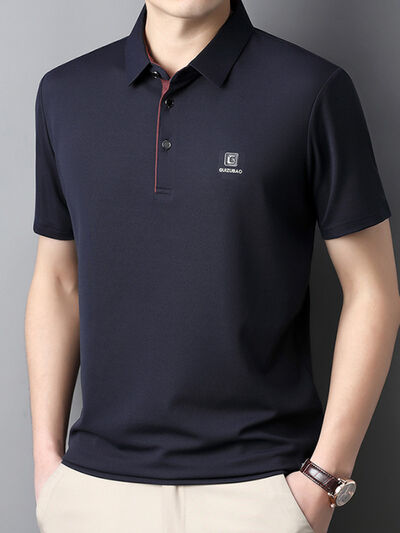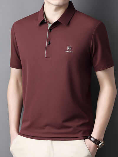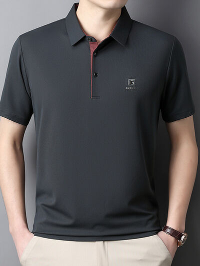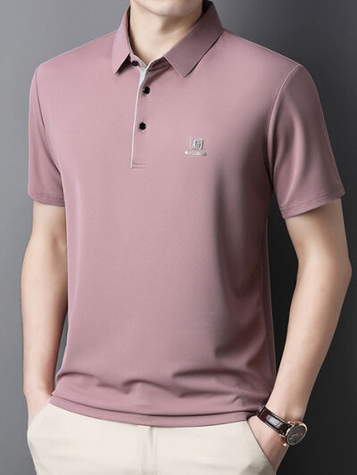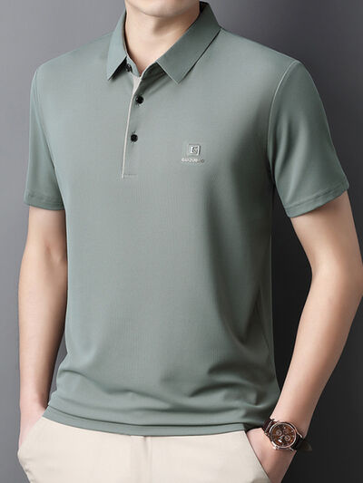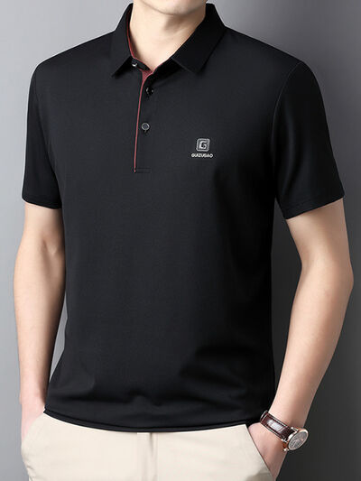 Men's Full Size Button Detail Short Sleeve Polo Plus Size