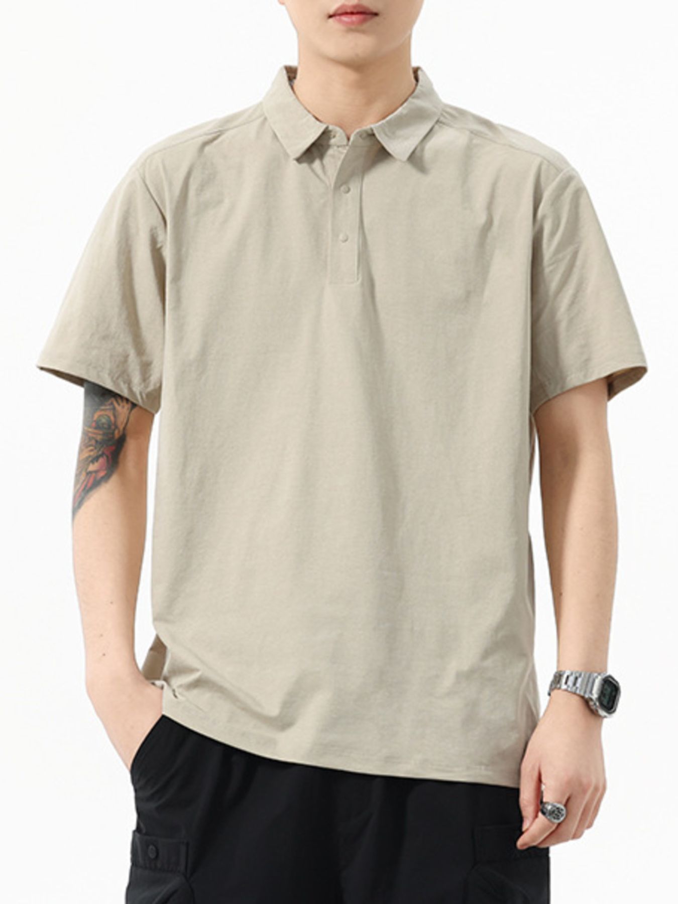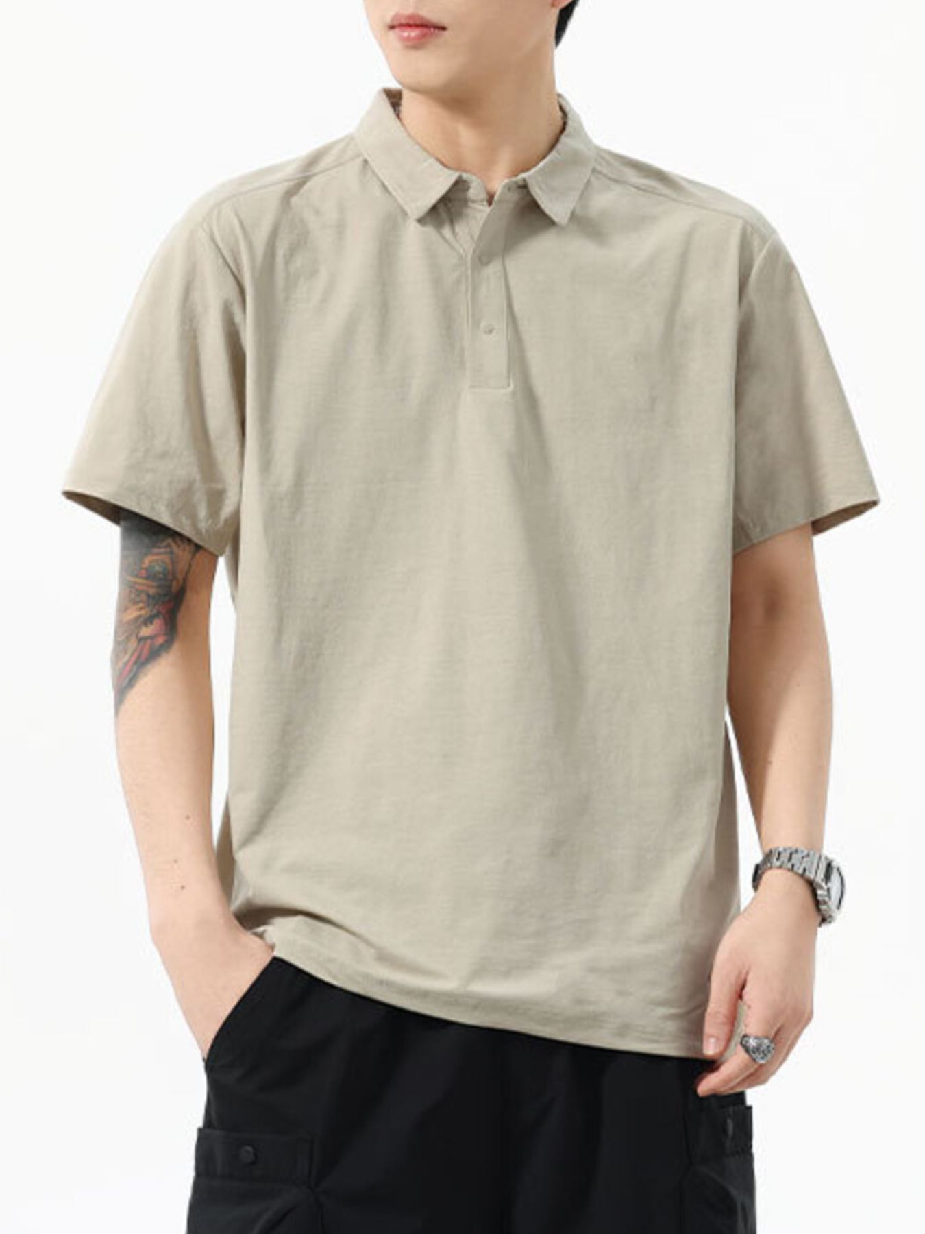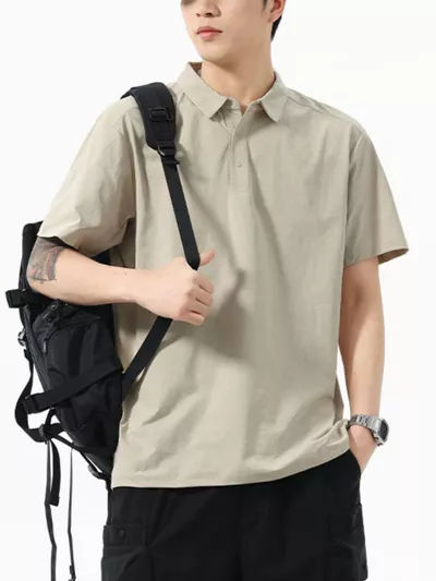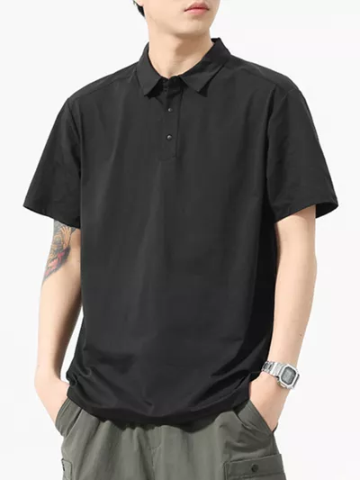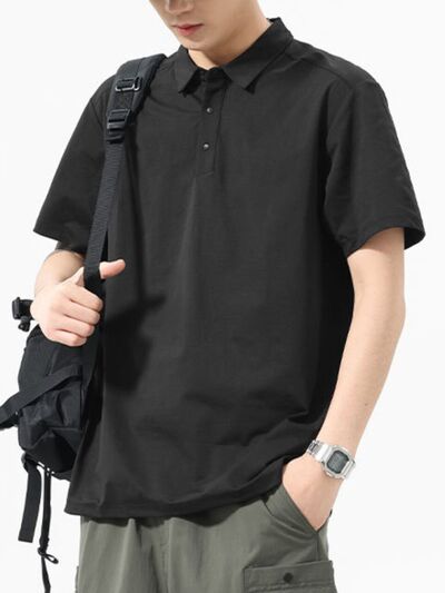 Men's Full Size Button Detail Short Sleeve Polo Plus Size