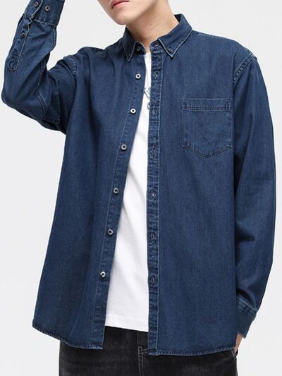 Men's Full Size Button-Down Denim Shirt Plus Size