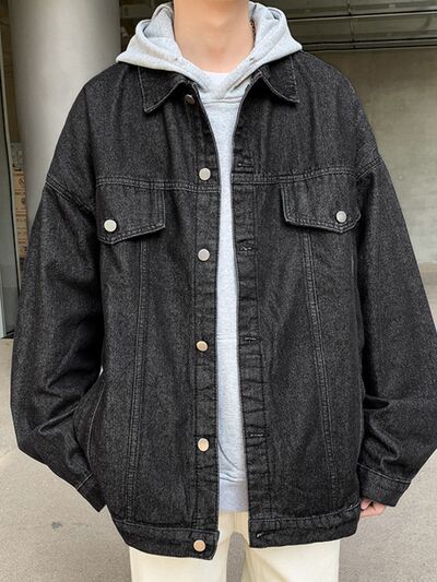 Men's Full Size Button Up Long Sleeve Denim Jacket Plus Size
