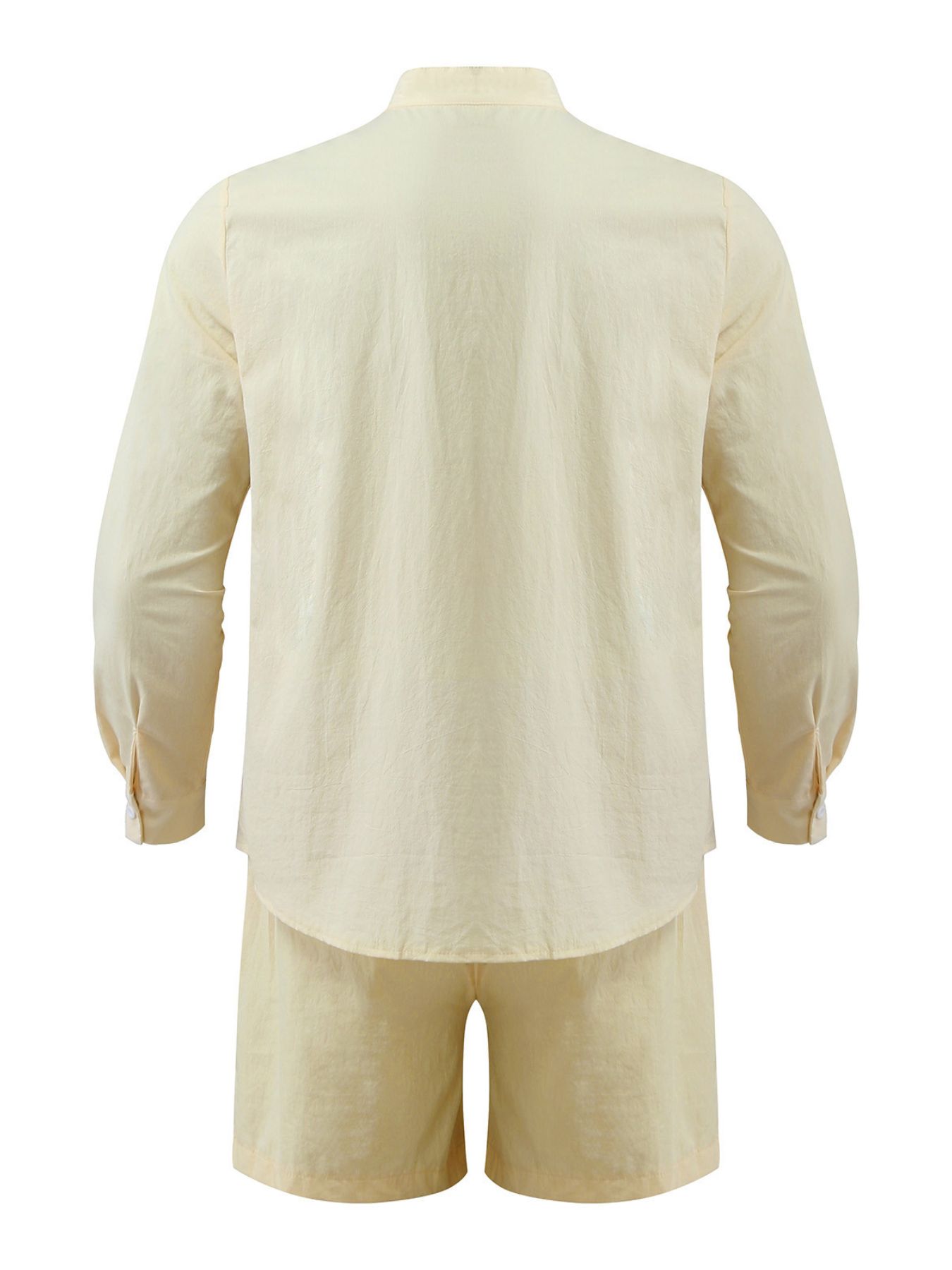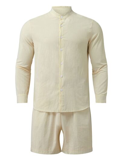 Men's Full Size Button Up Long Sleeve Shirt and Shorts Set Plus Size