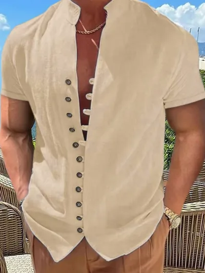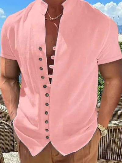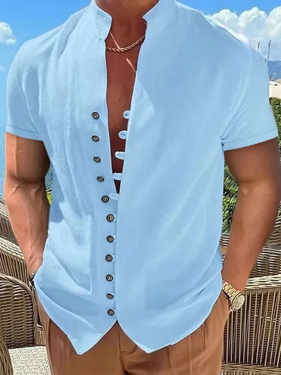 Men's Full Size Button Up Short Sleeve Shirt Plus Size