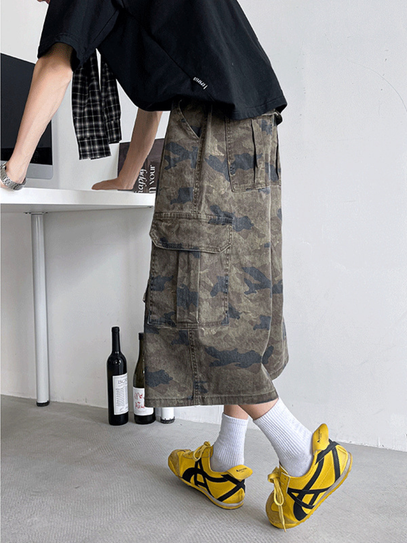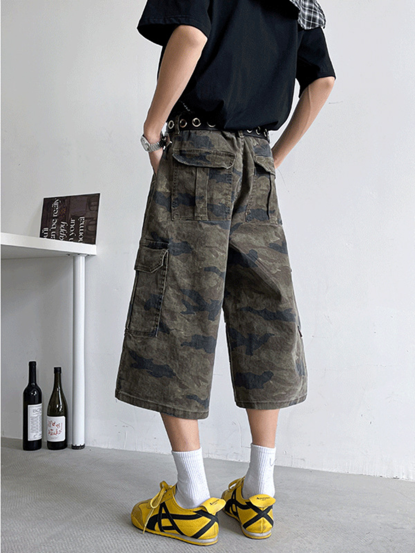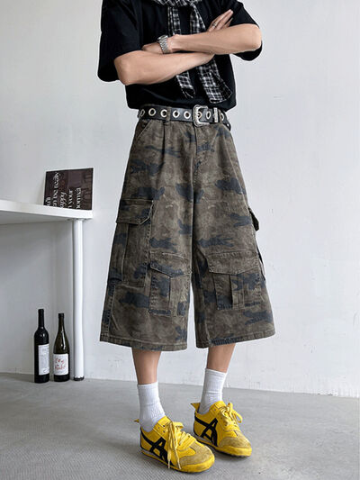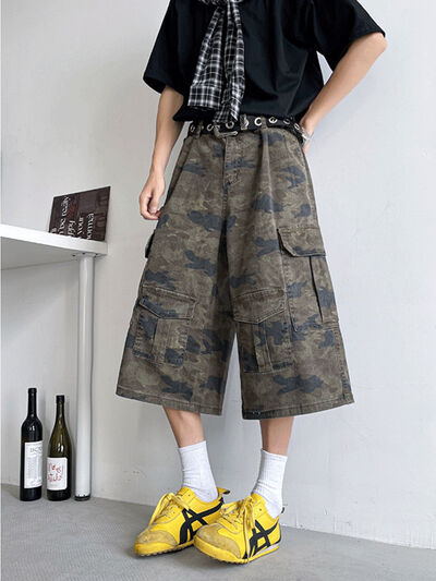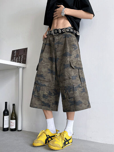 Men's Full Size Camouflage Wide Leg Denim Shorts Plus Size