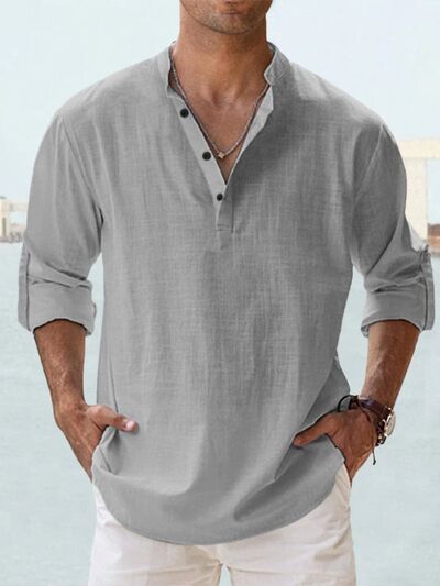 Men's Full Size Casual Button Detail Roll-Up Sleeve Blouse Plus Size