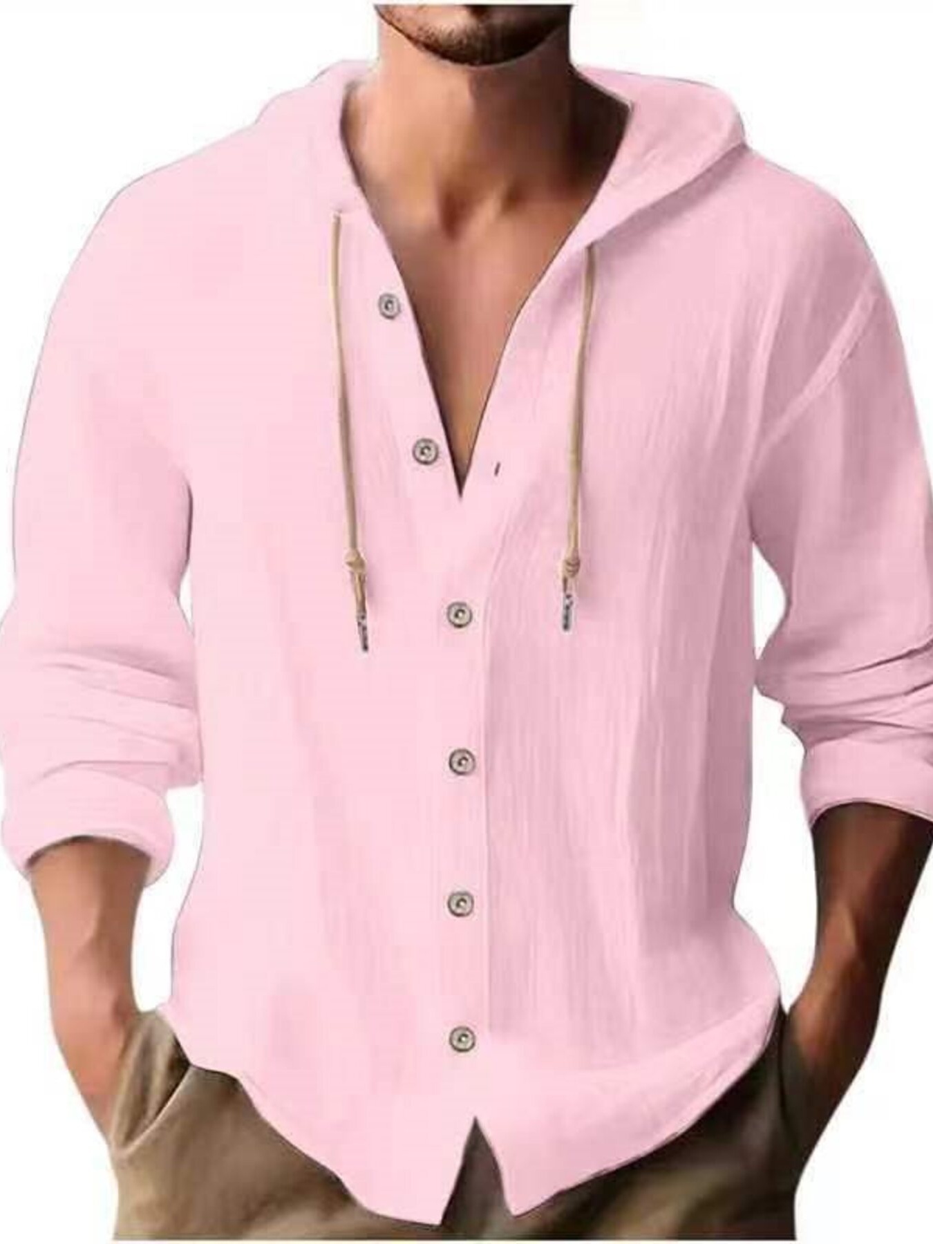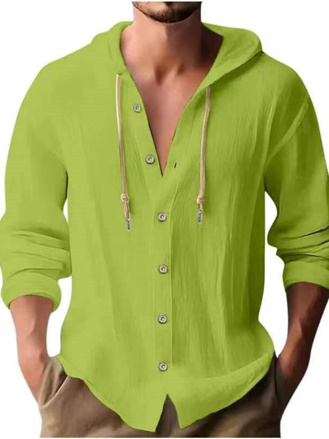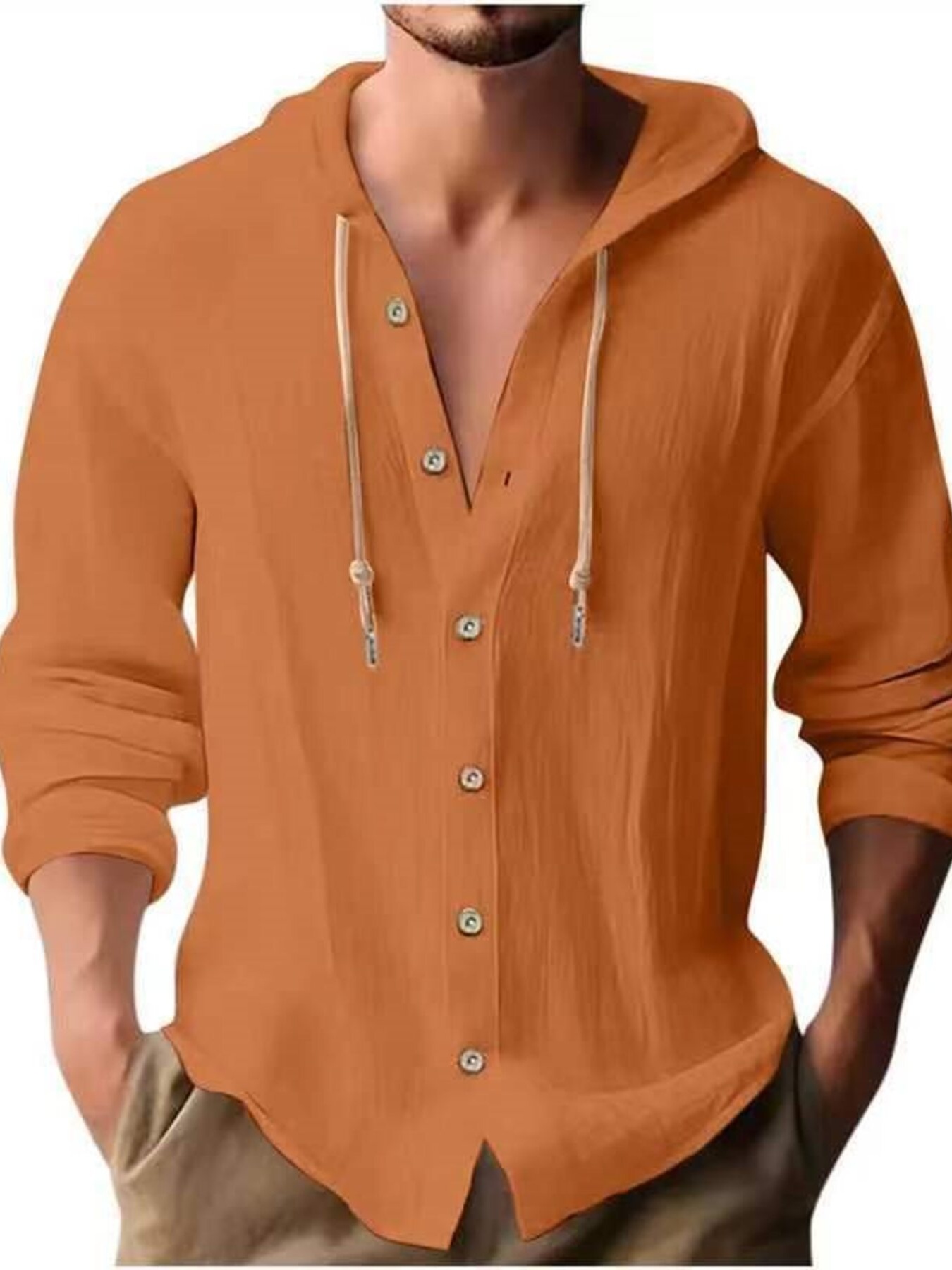 Men's Full Size Casual Button-Down Hooded Top Plus Size