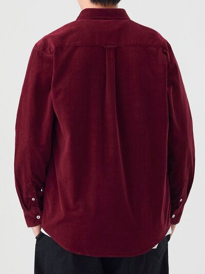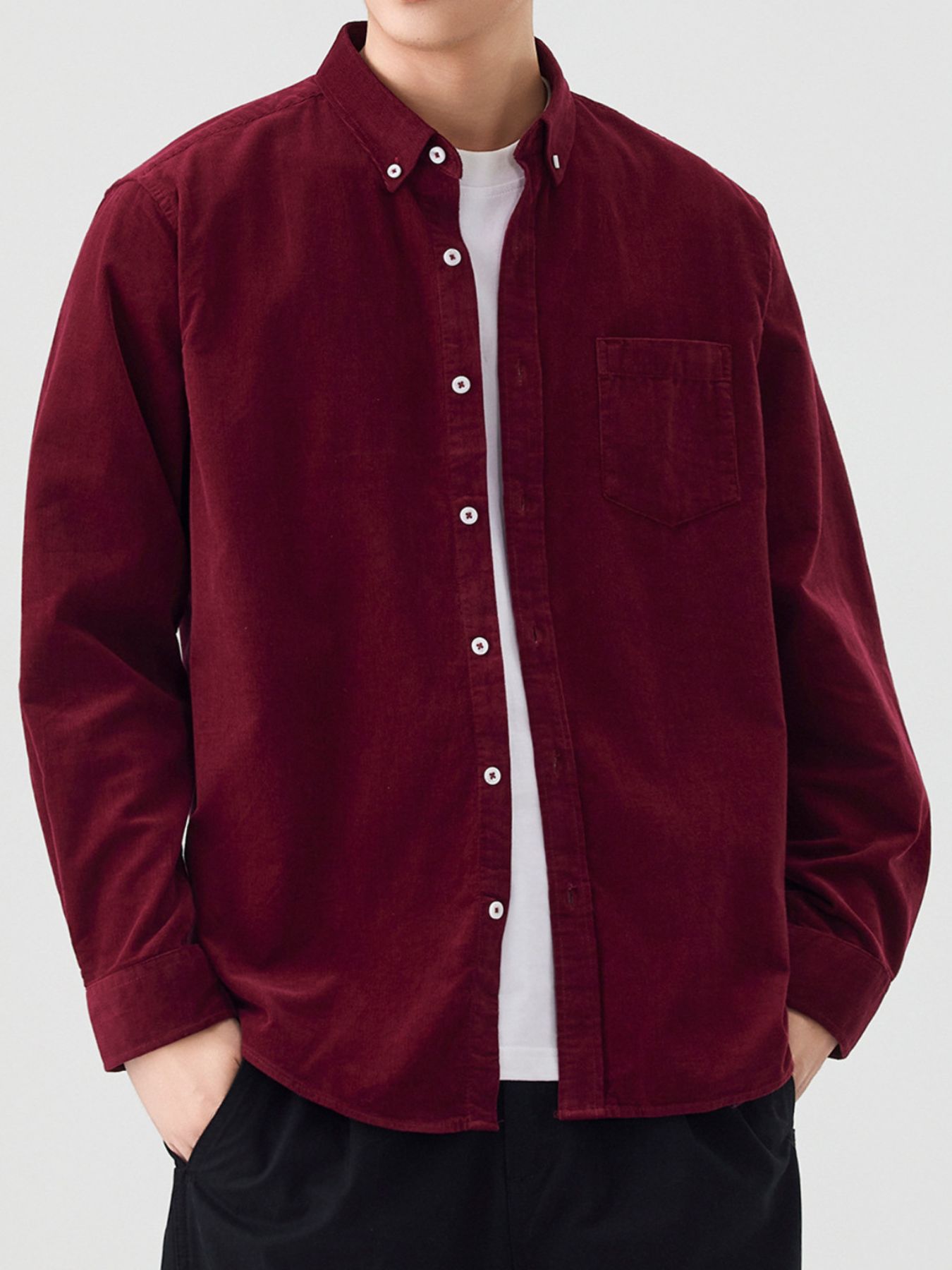 Men's Full Size Casual Corduroy Long Sleeve Shirt Plus Size