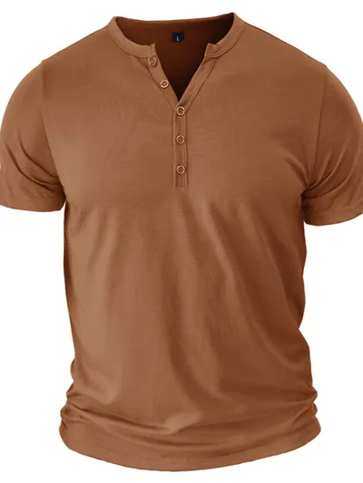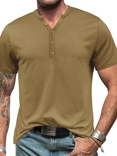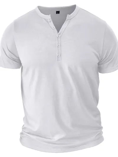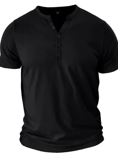 Men's Full Size Casual Henley Short Sleeve Polo Shirt Plus Size