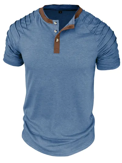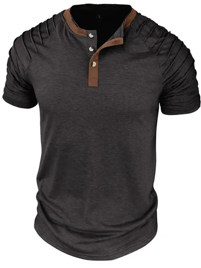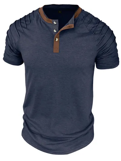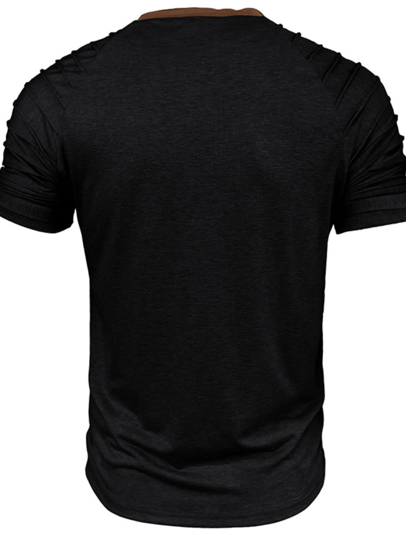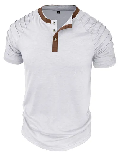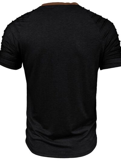 Men's Full Size Casual Henley Short Sleeve Top with Contrast Collar Plus Size