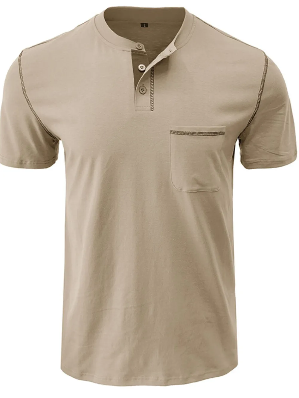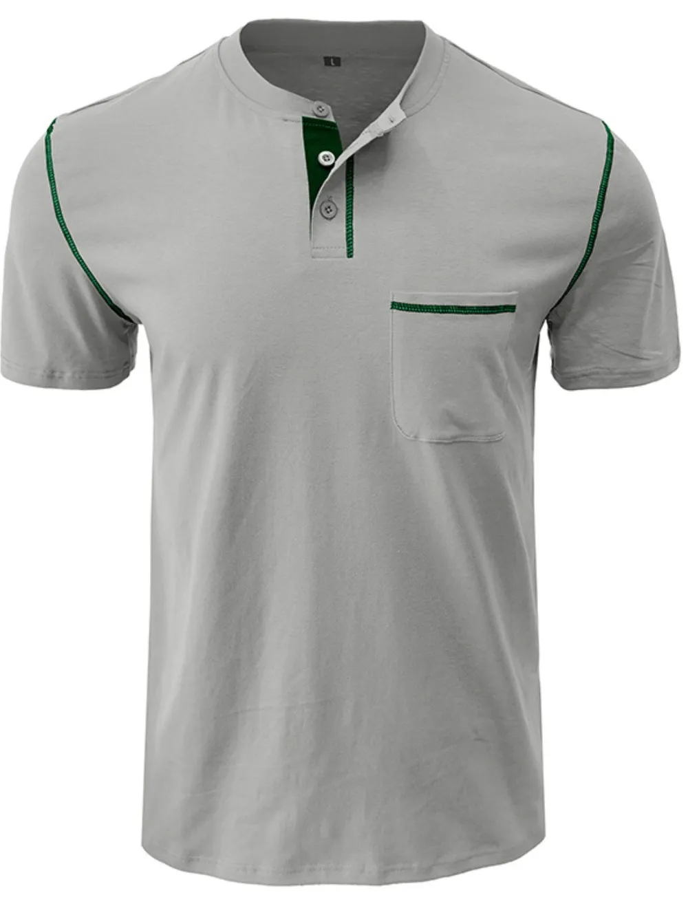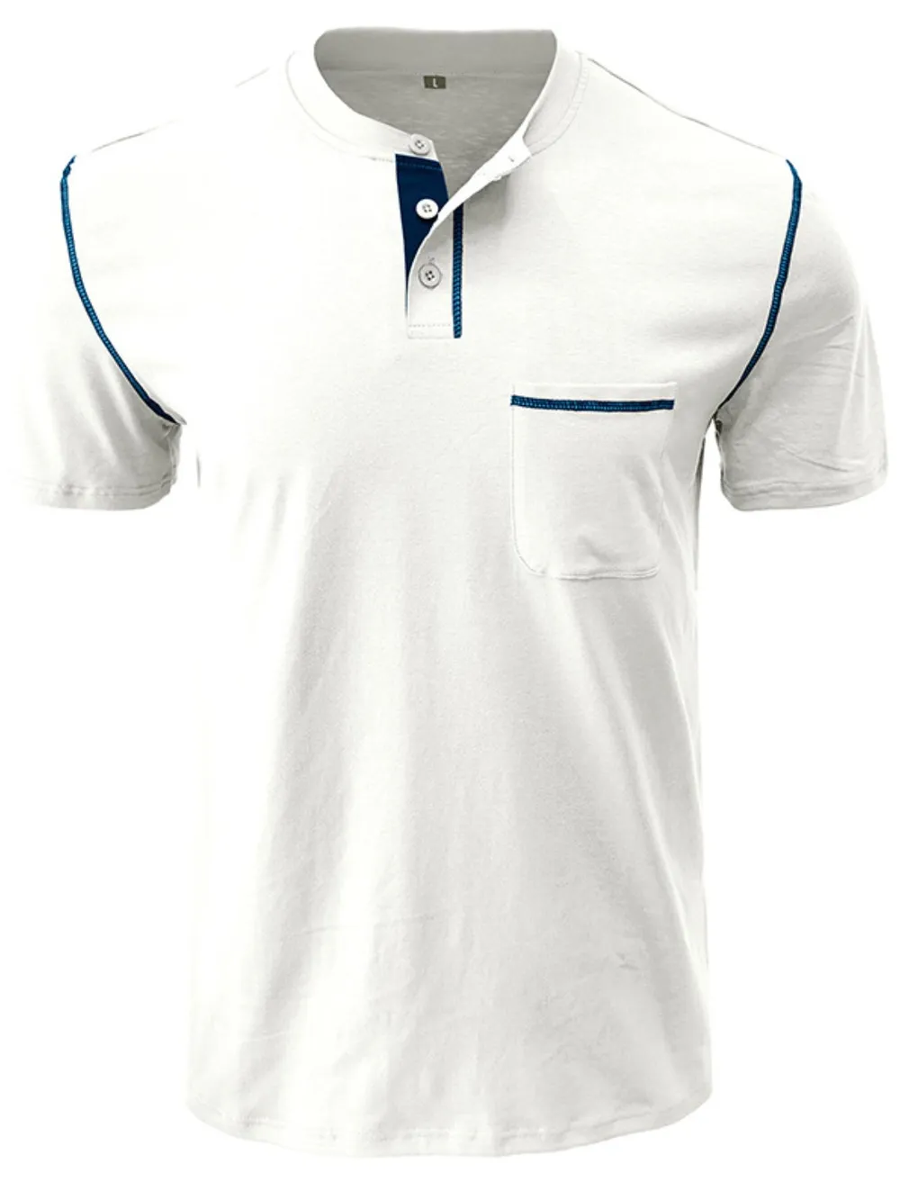 Men's Full Size Casual Henley T-Shirt with Contrast Stitching and Pocket Plus Size