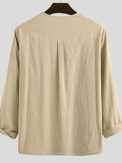 Men's Full Size Casual Lace-Up Long Sleeve Blouse Plus Size