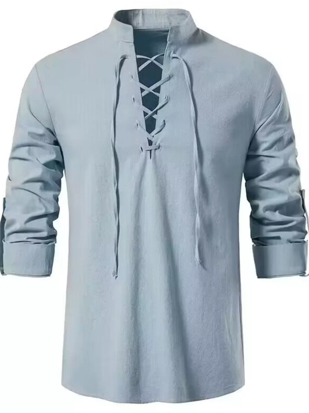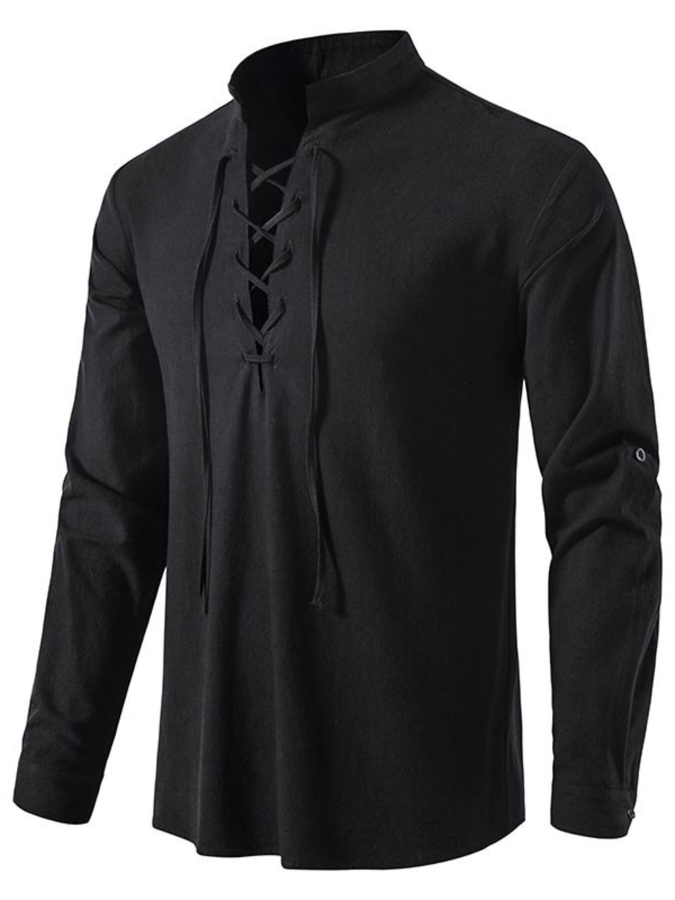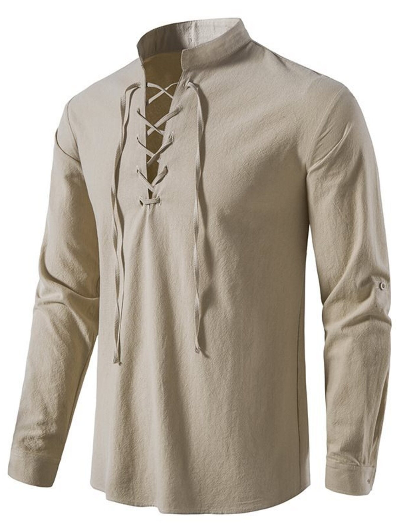Men's Full Size Casual Lace-Up Long Sleeve Shirt Plus Size