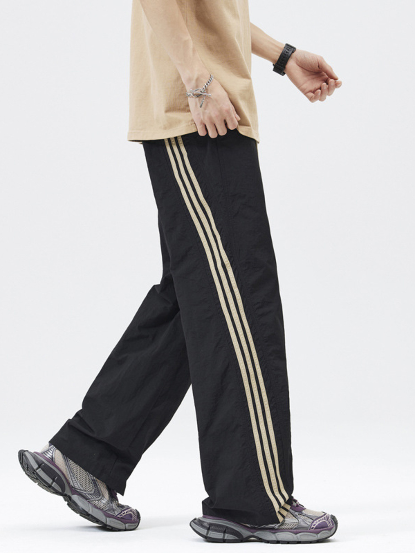 Men's Full Size Casual Loose Fit Drawstring Pants with Side Stripes Plus Size