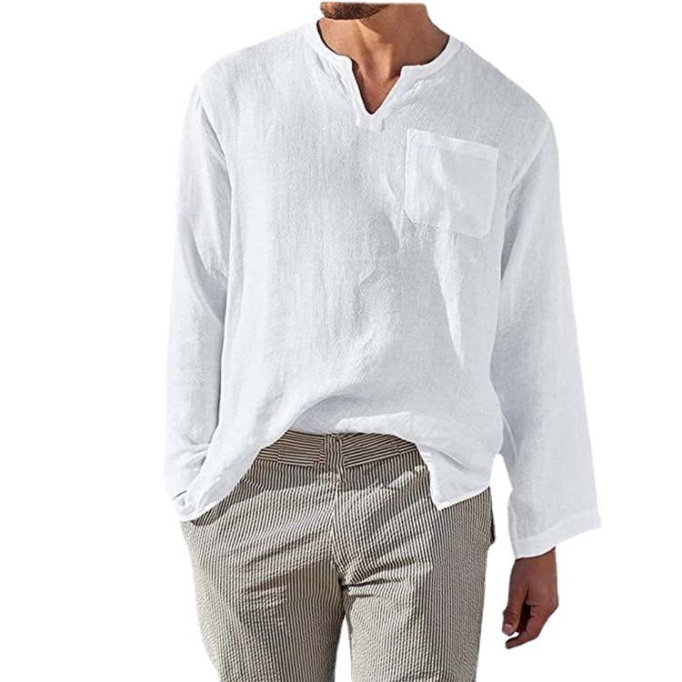 Men's Full Size Casual Notched Linen Long Sleeve Top Plus Size