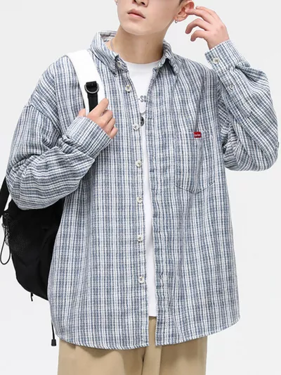 Men's Full Size Casual Plaid Button Up Shirt Plus Size