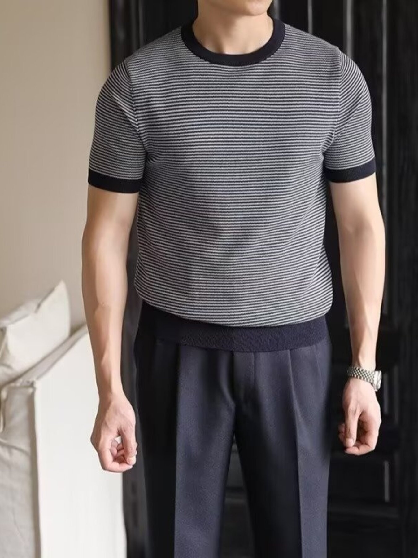 Men's Full Size Classic Striped Contrast Trim T-Shirt Plus Size