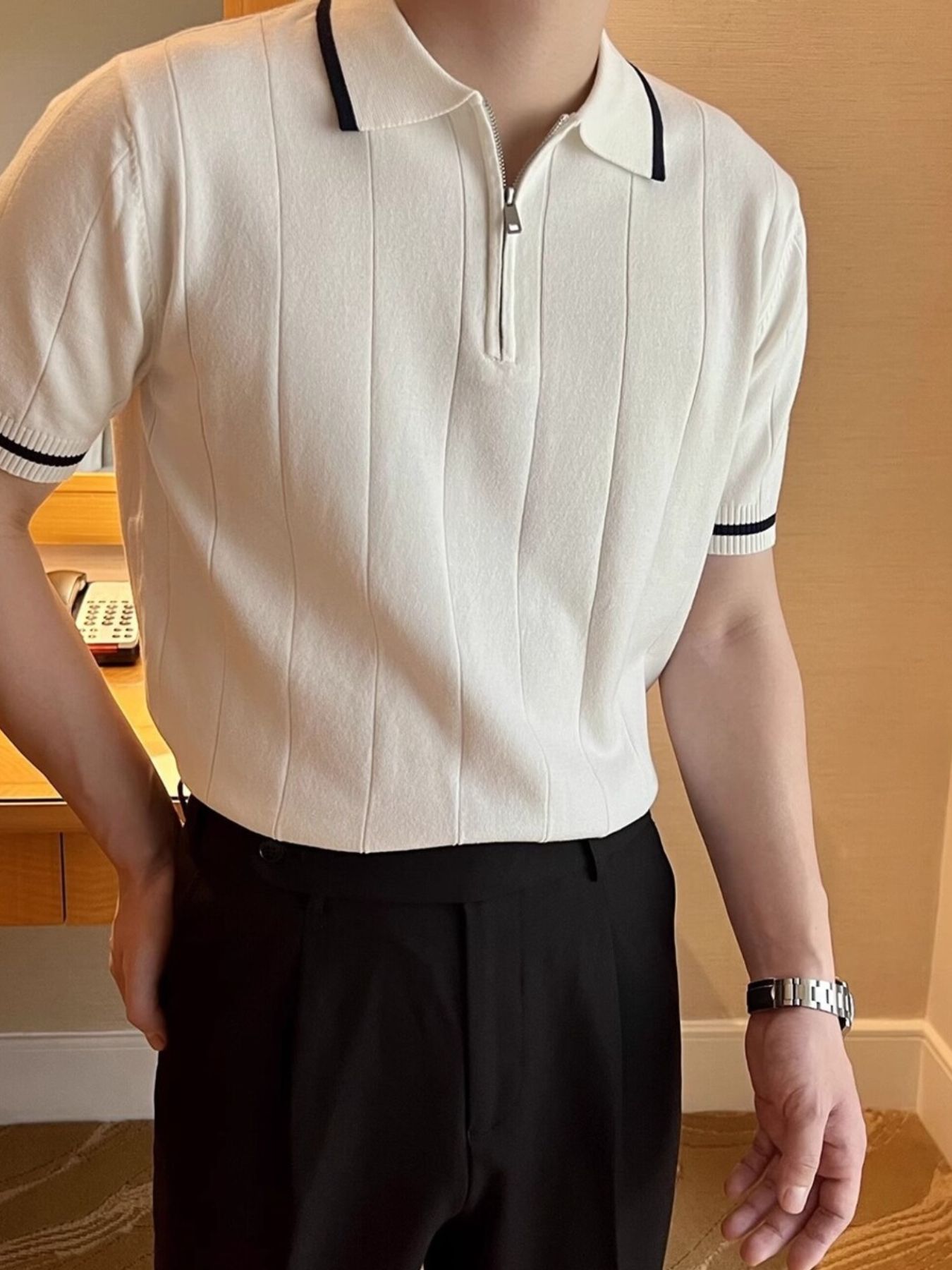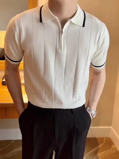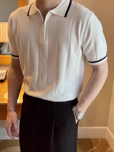 Men's Full Size Classic Zip Collar Short Sleeve Polo Shirt Plus Size