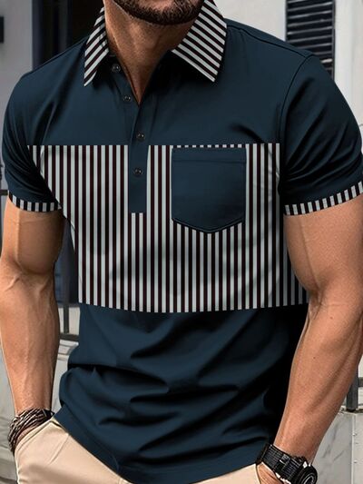 Men's Full Size Collared Contrast Striped Polo Plus Size