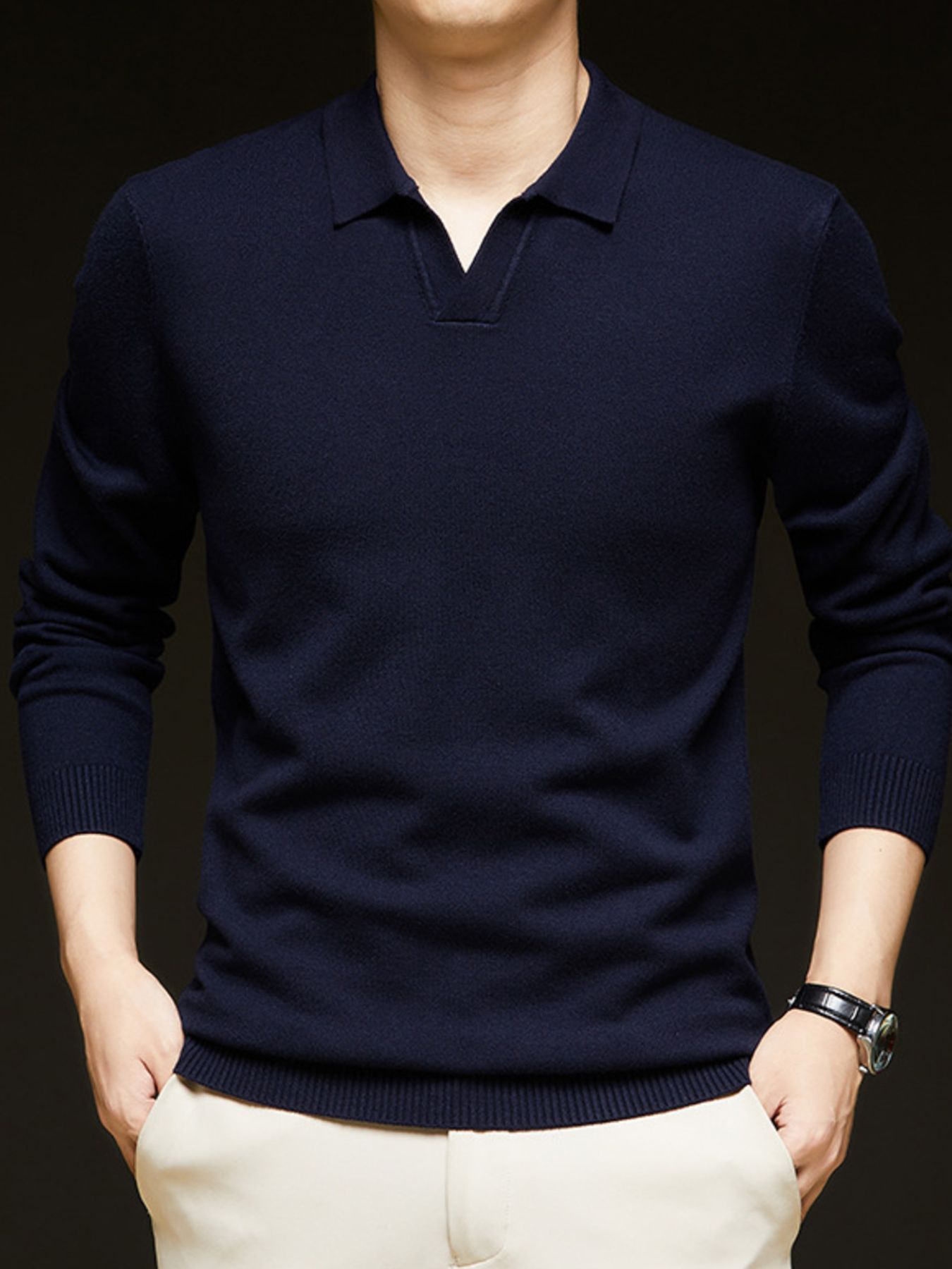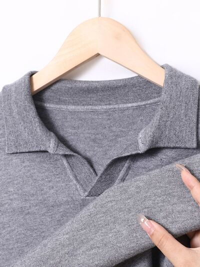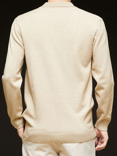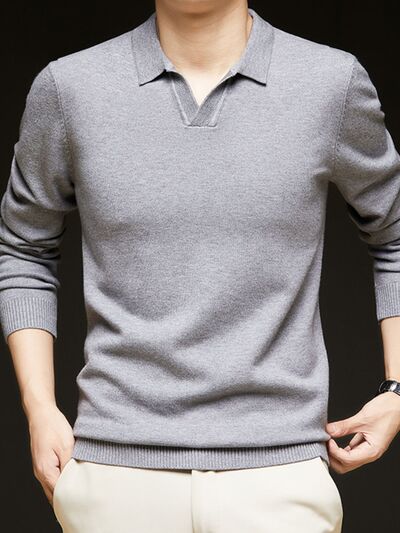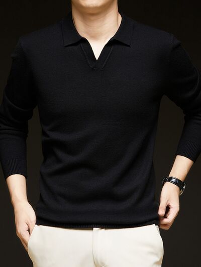 Men's Full Size Collared Neck Long Sleeve Polo Plus Size