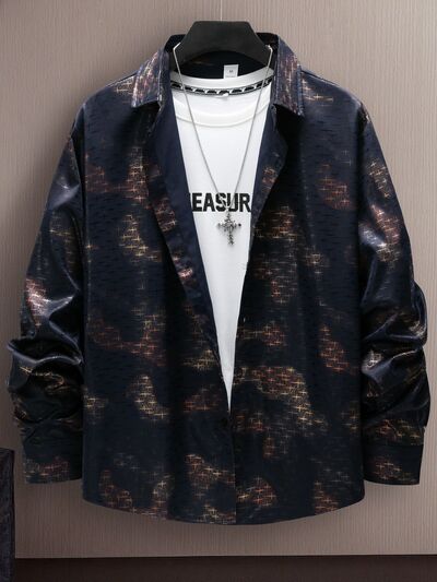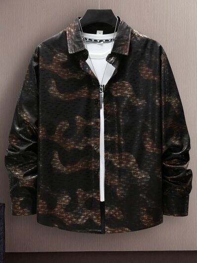 Men's Full Size Collared Neck Long Sleeve Shirt Plus Size