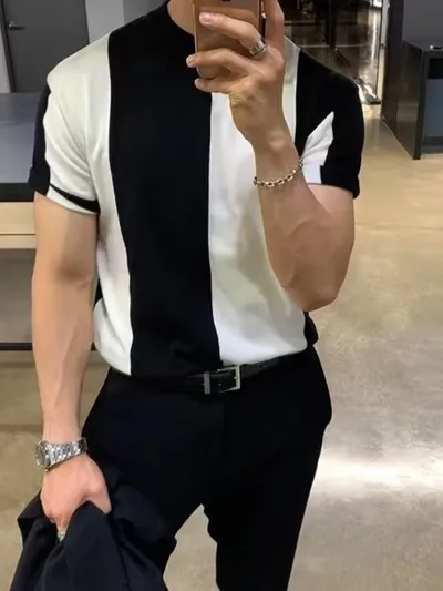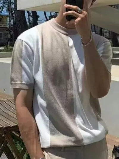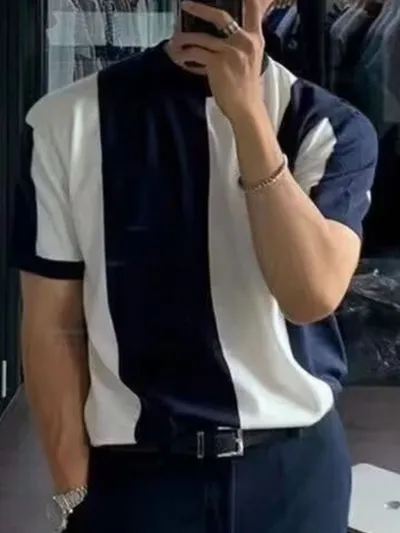Men's Full Size Color Block Short Sleeve Top Plus Size