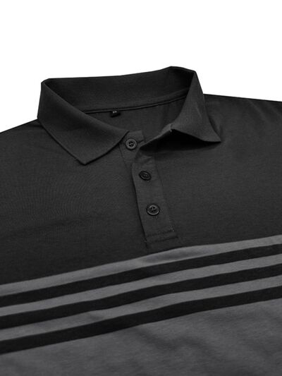 Men's Full Size Color Block Striped Polo Shirt Plus Size
