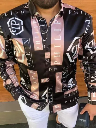Men's Full Size Contrast Button Up Long Sleeve Shirt Plus Size