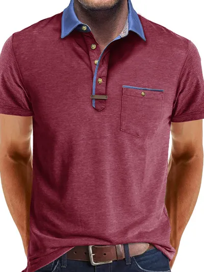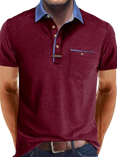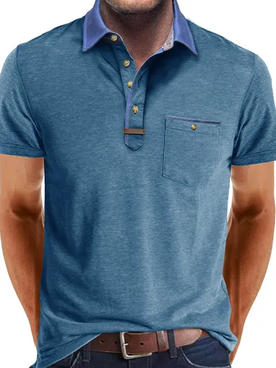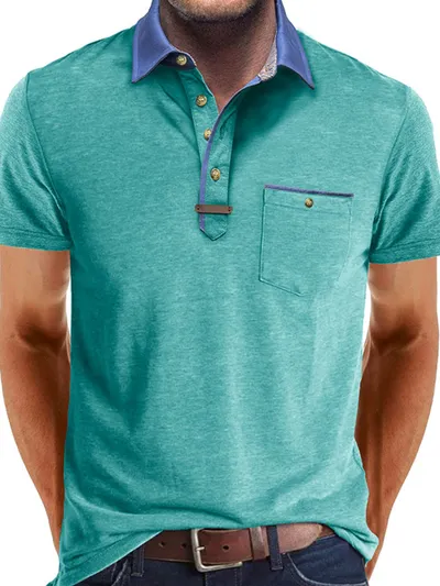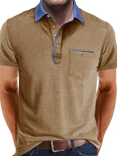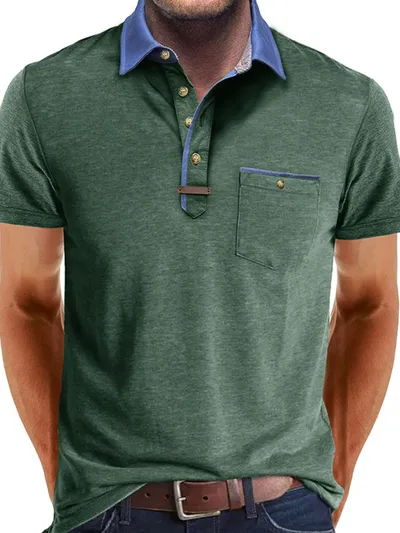 Men's Full Size Contrast Collar Pocket Polo Shirt Plus Size
