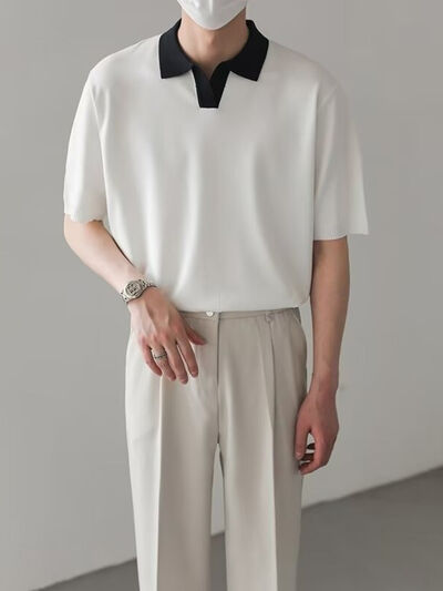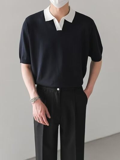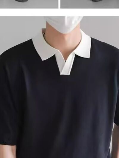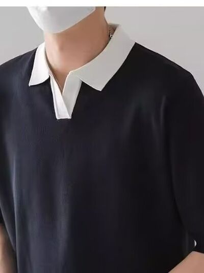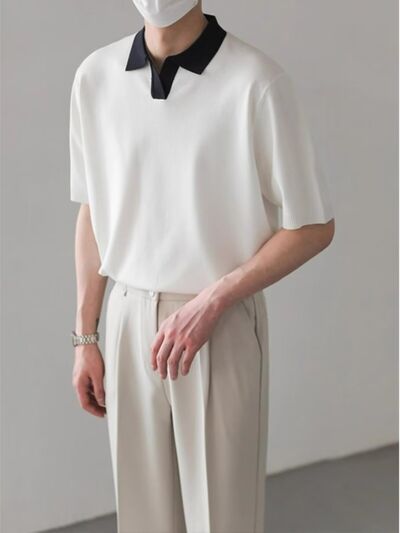 Men's Full Size Contrast Collar Short Sleeve Polo Shirt Plus Size