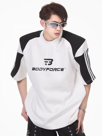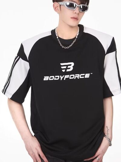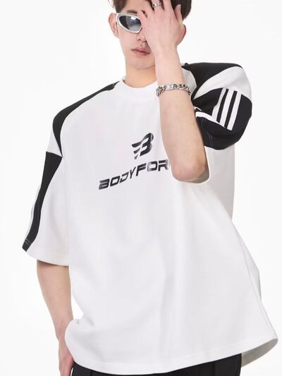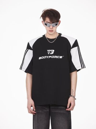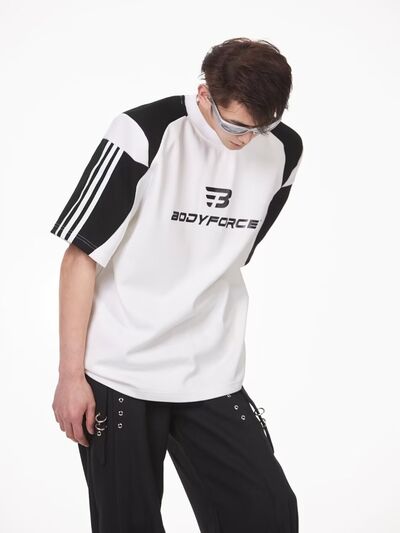 Men's Full Size Contrast Panels Round Neck T-Shirt Plus Size