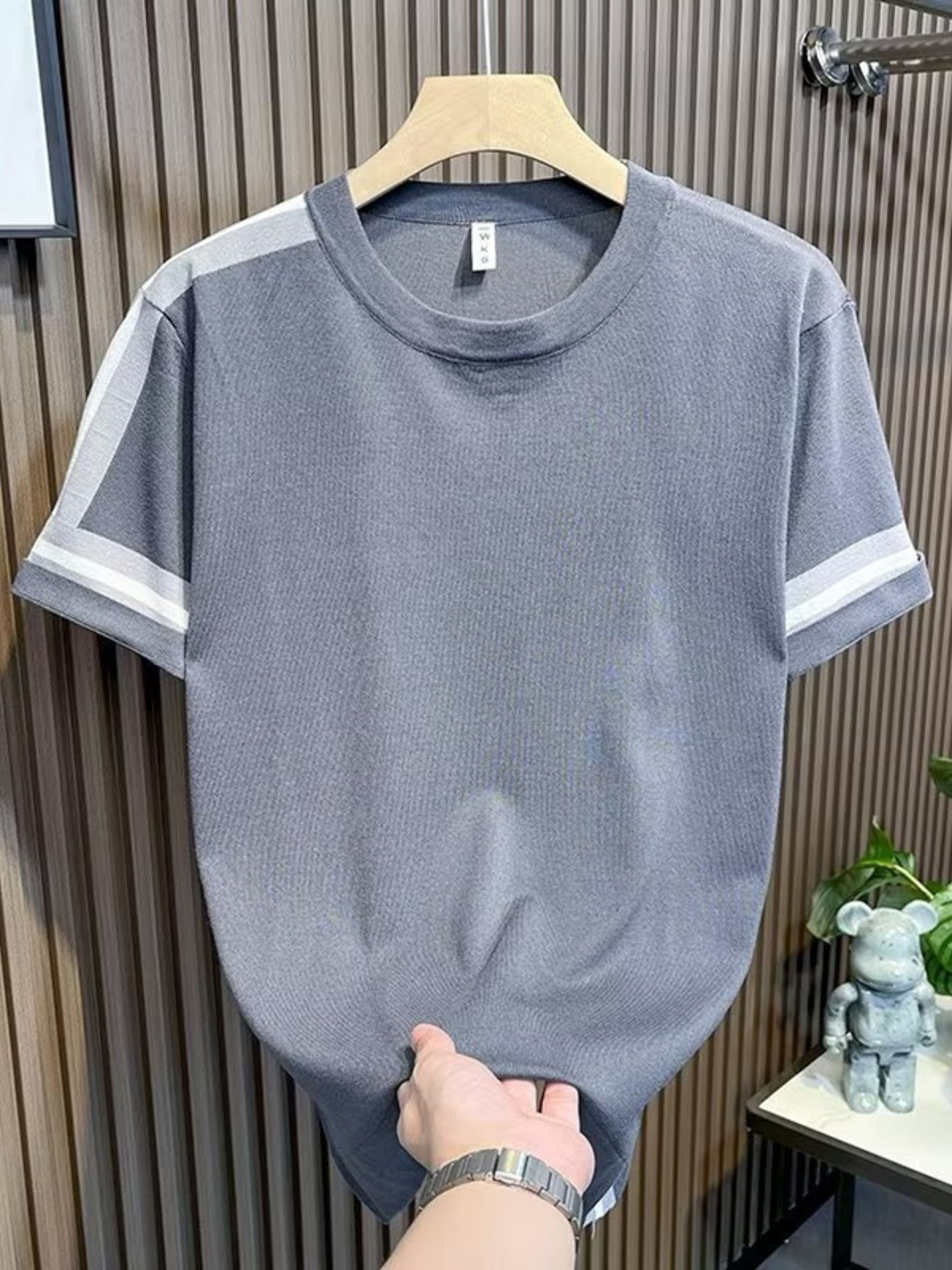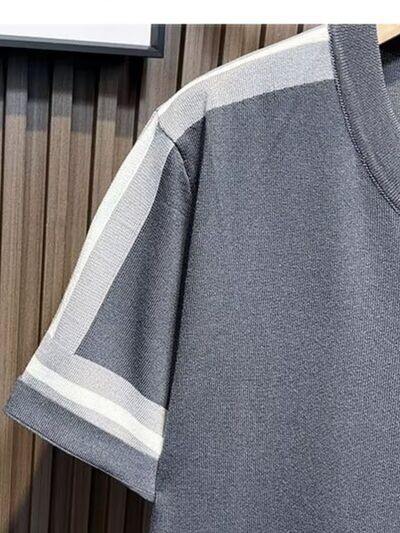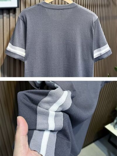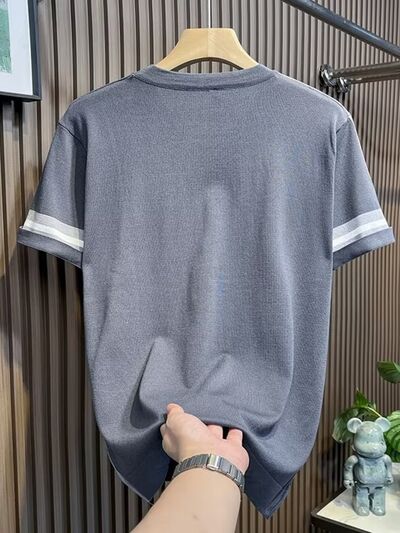 Men's Full Size Contrast Shoulder Stripes Round Neck T-Shirt Plus Size