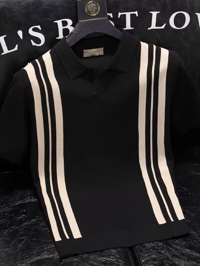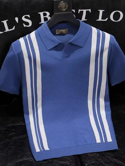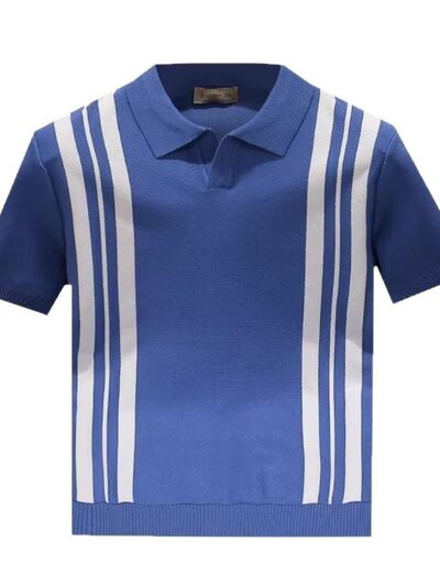 Men's Full Size Contrast Striped Short Sleeve Polo Plus Size