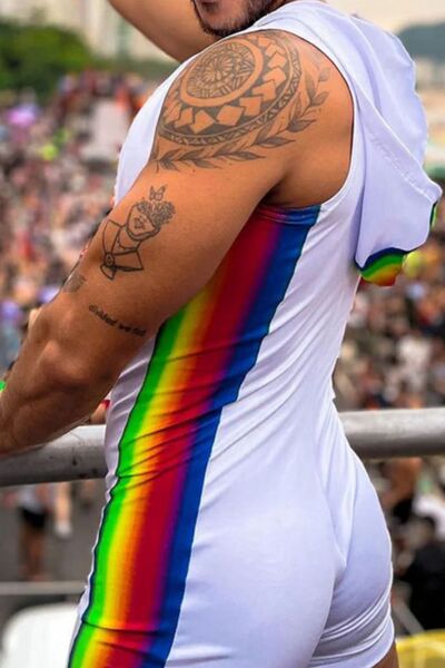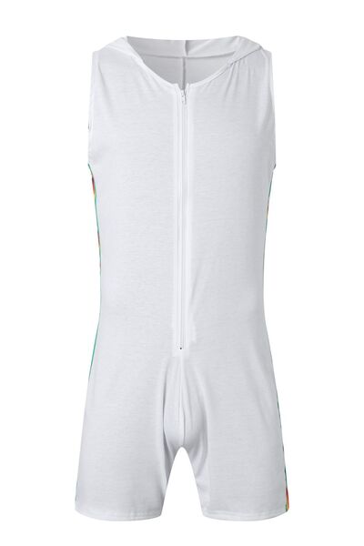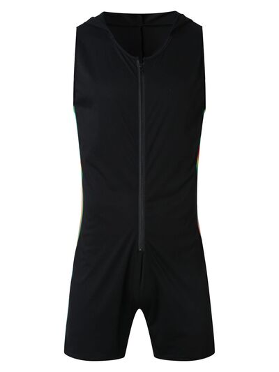 Men's Full Size Contrast Zip Front Sleeveless Active Romper Plus Size