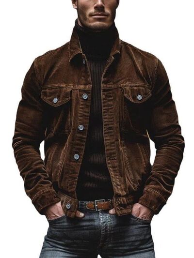 Men's Full Size Corduroy Button-Down Jacket Plus Size