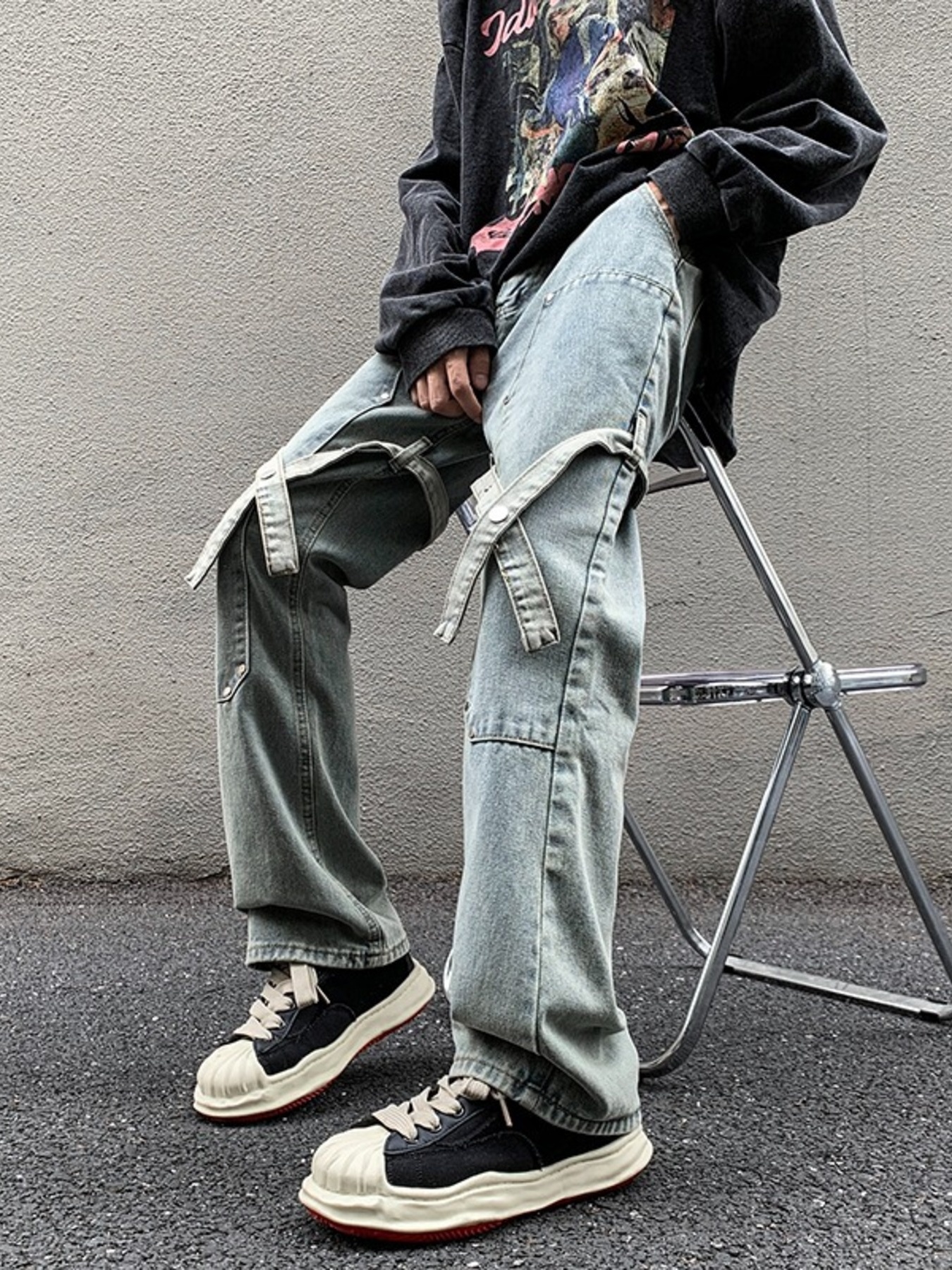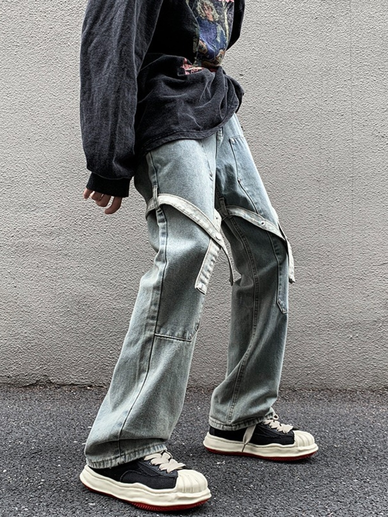 Men's Full Size Cross Strap Embellished Jeans Plus Size