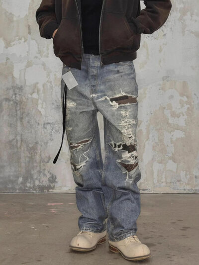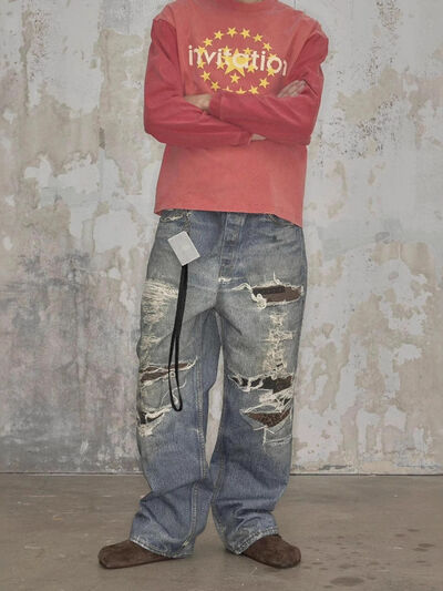 Men's Full Size Distressed Baggy Boyfriend Jeans Plus Size