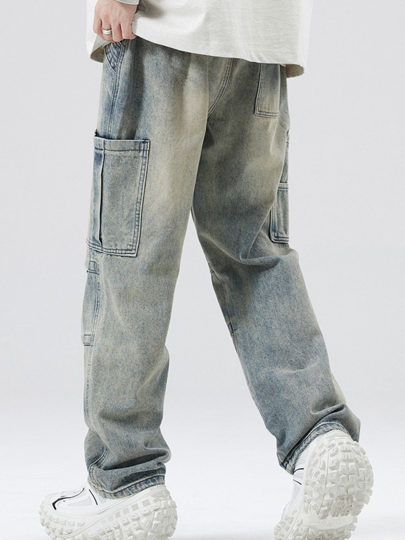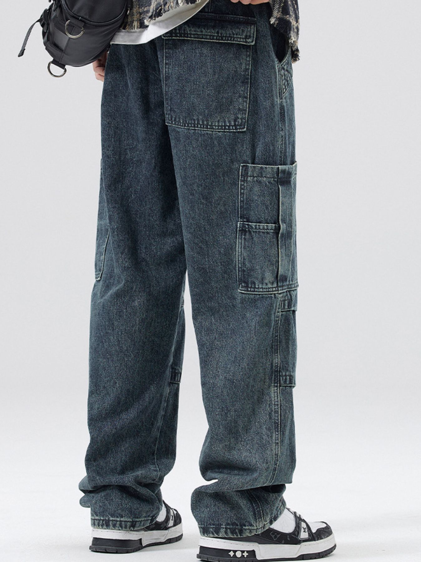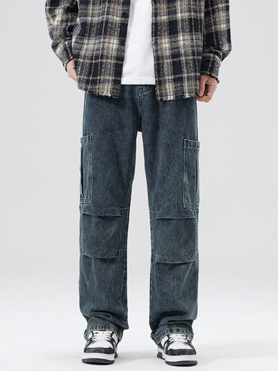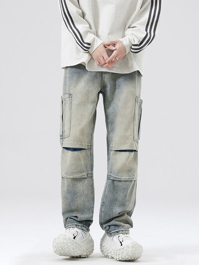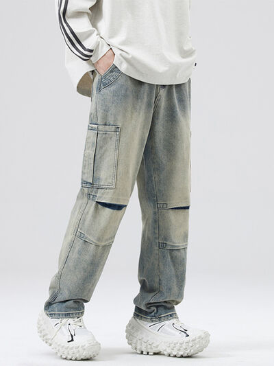Men's Full Size Distressed Cargo Jeans Plus Size
