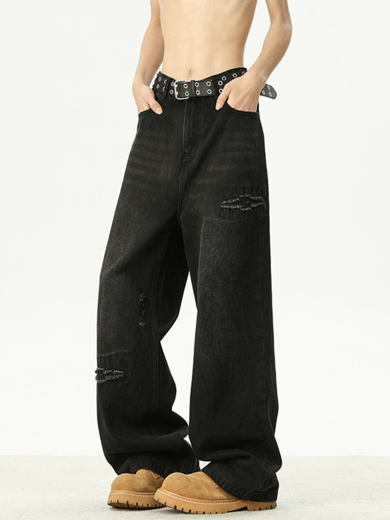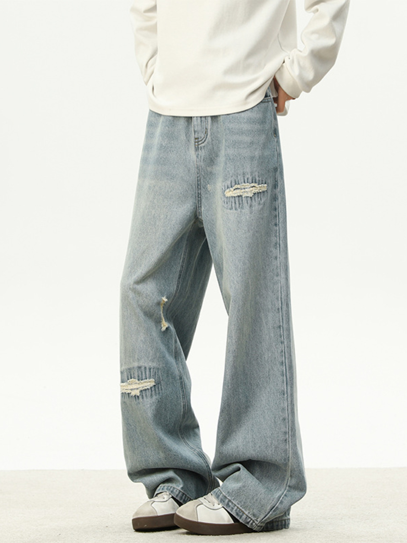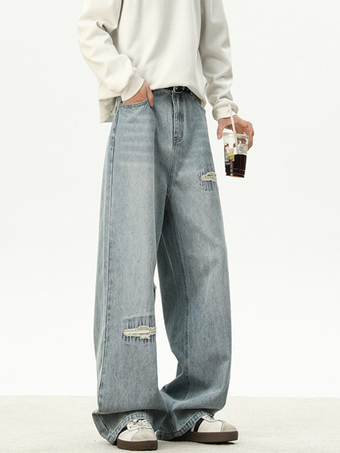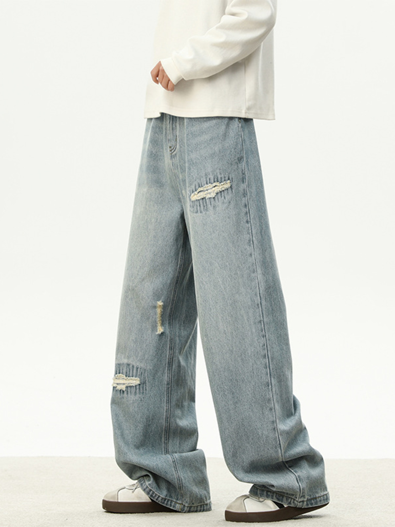 Men's Full Size Distressed Wash Loose Fit Jeans Plus Size