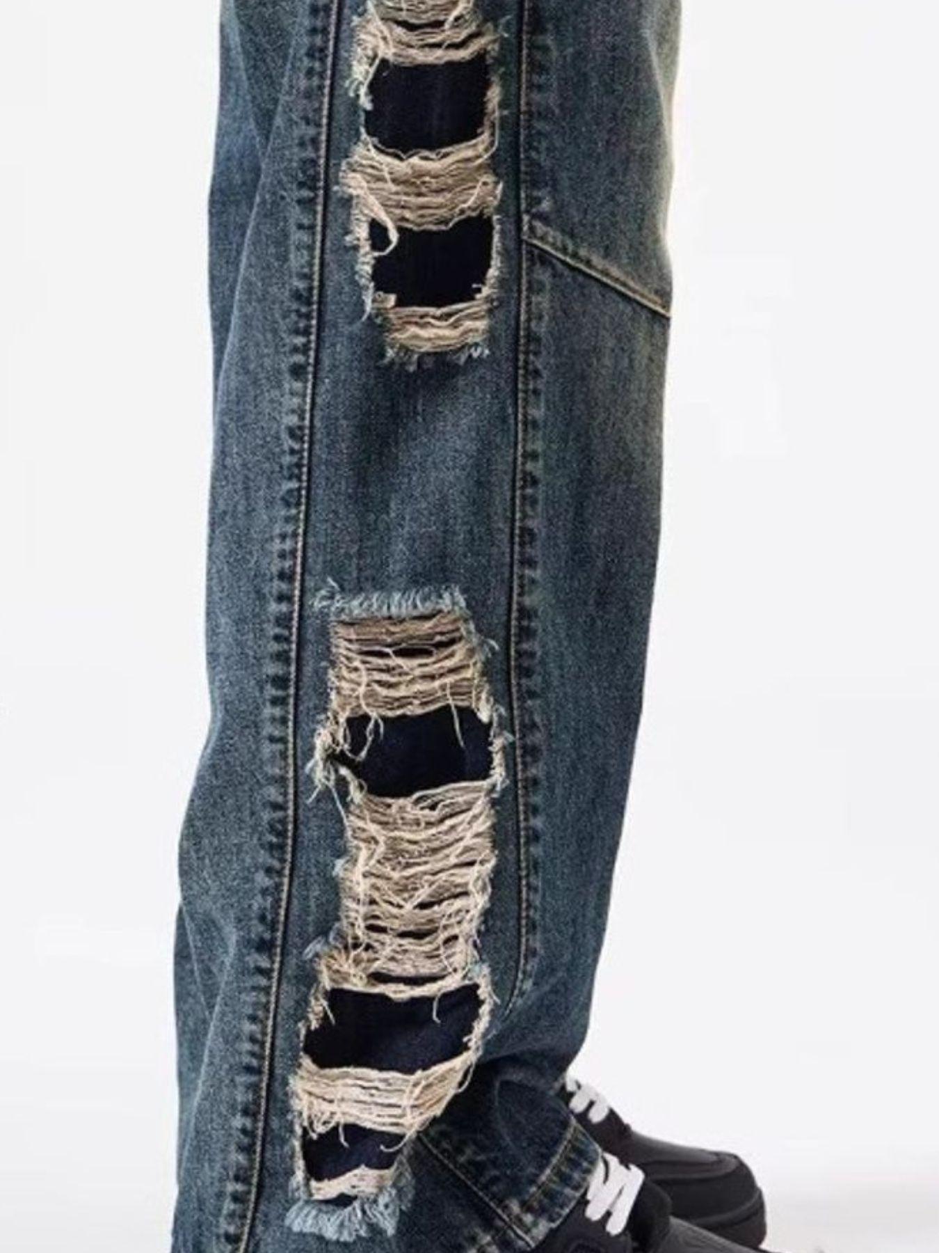 Men's Full Size Distressed Wide Leg Baggy Jeans Plus Size