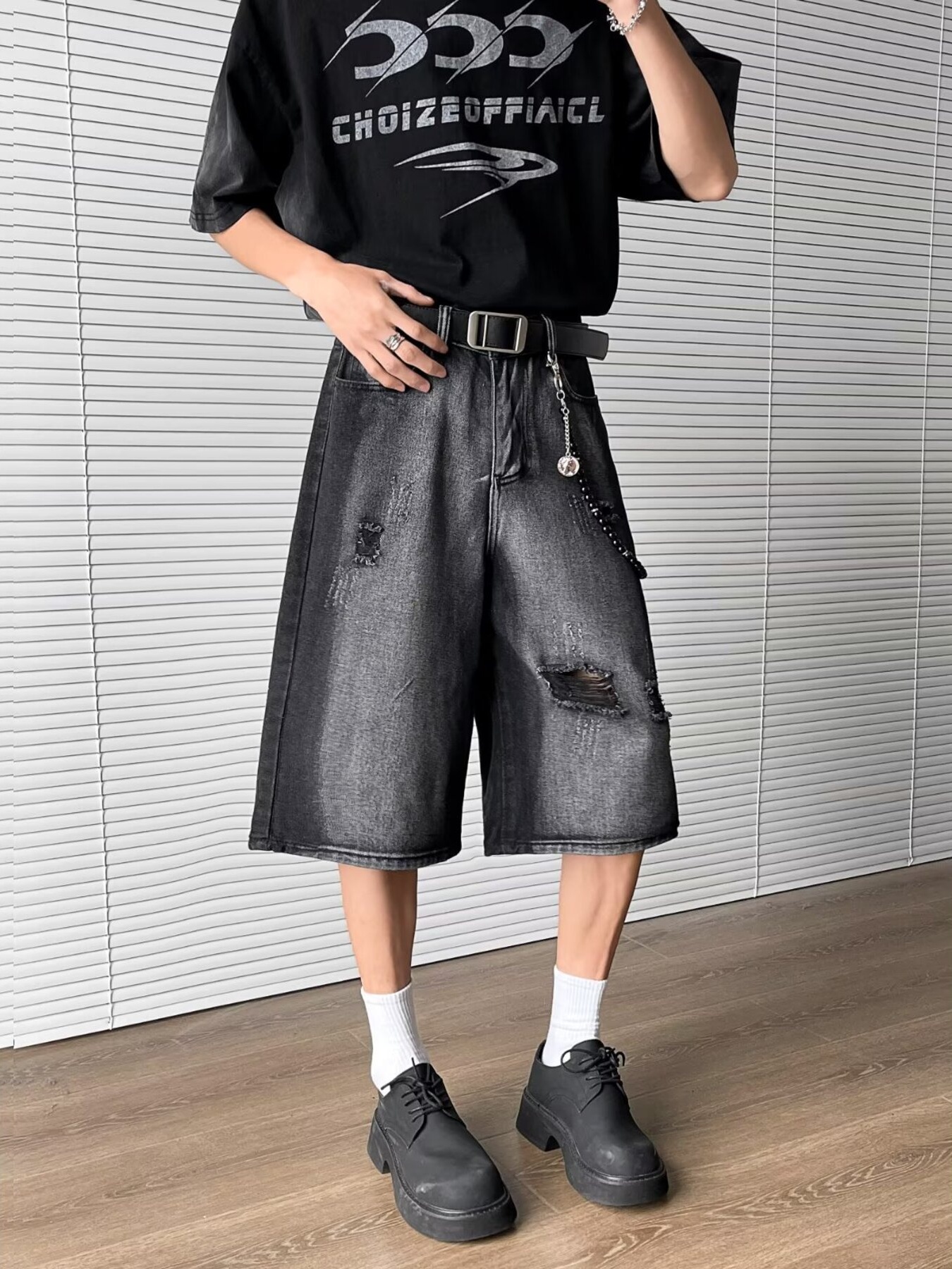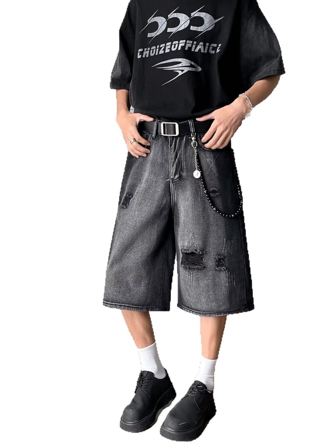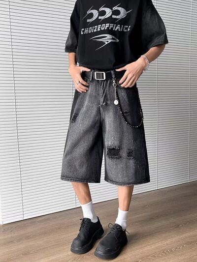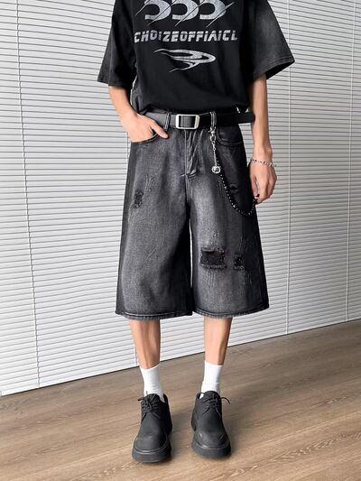 Men's Full Size Distressed Wide Leg Denim Shorts Plus Size