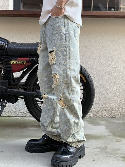 Men's Full Size Distressed Wide Leg Jeans Plus Size