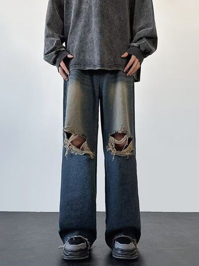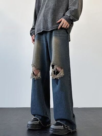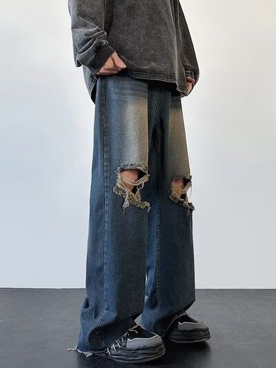 Men's Full Size Distressed Wide Leg Jeans Plus Size